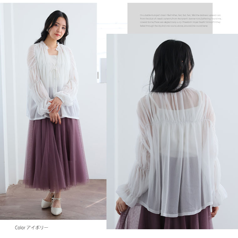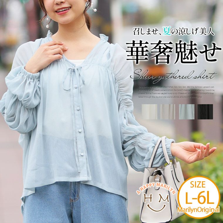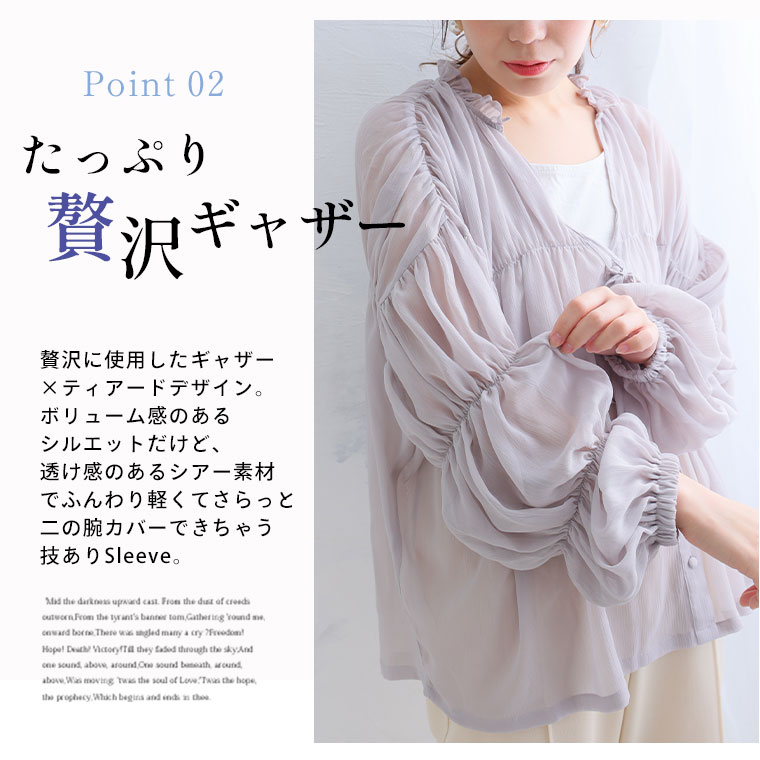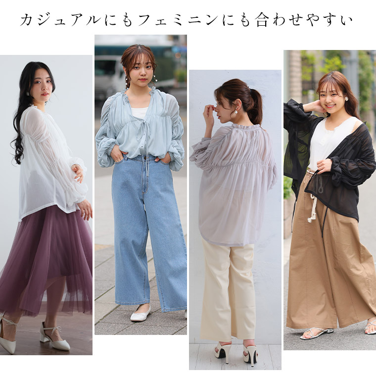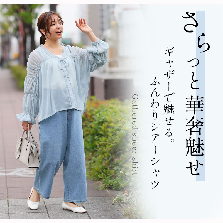 涼しげ×華奢魅せ たっぷりギャザーデザインのシアーシャツ