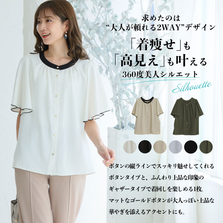 洗練&着やせる 美人 ポーラ 前後2way フリル袖 ブラウス