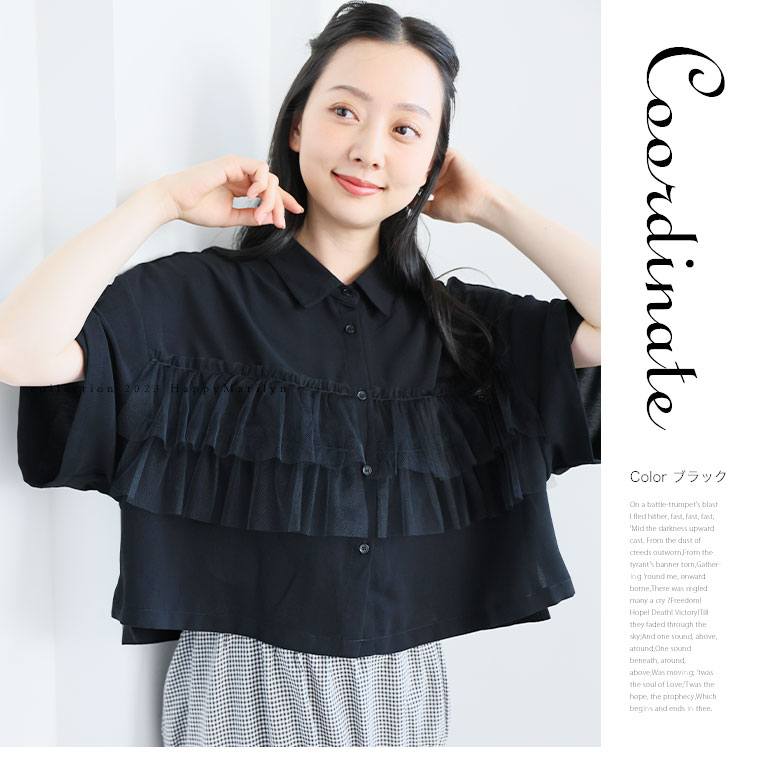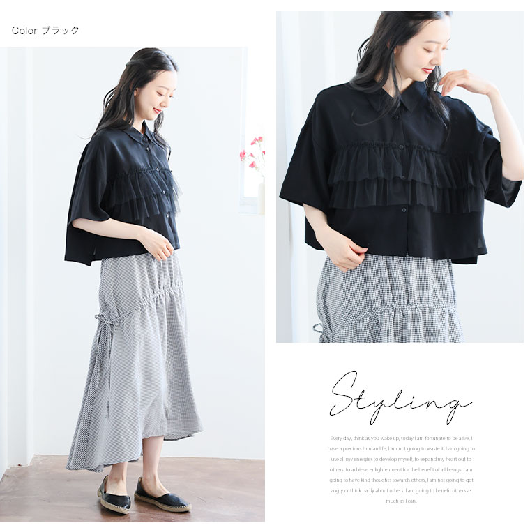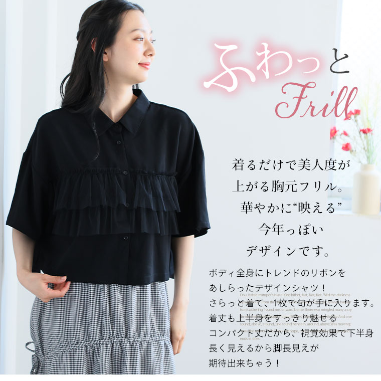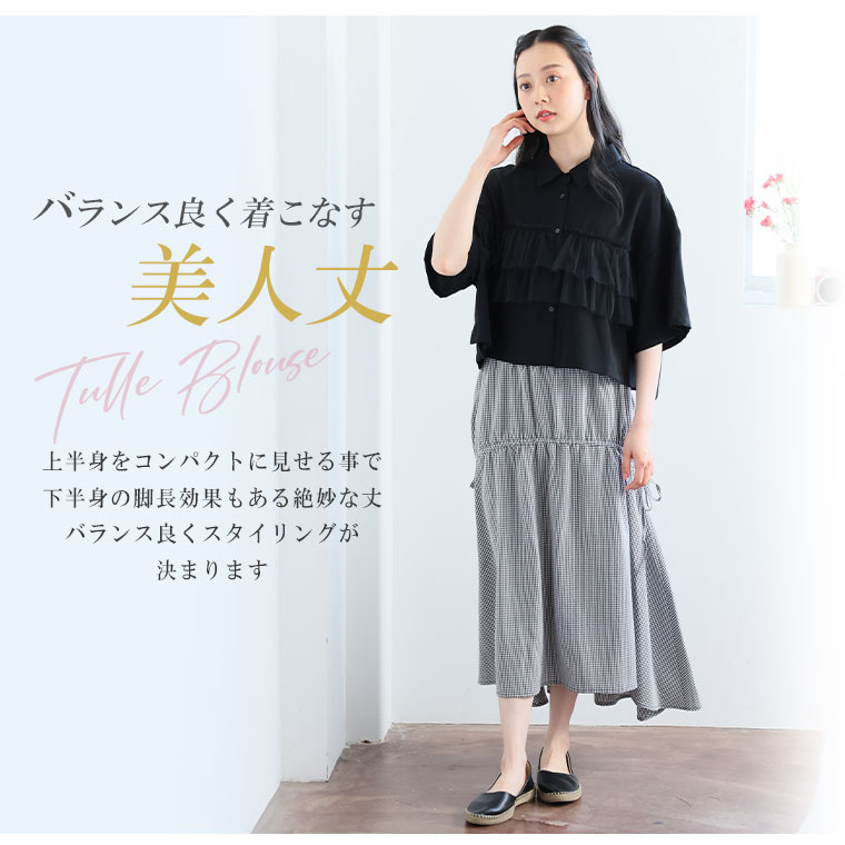 トレンドのフリル×コンパクト丈でかわいく脚長見え!