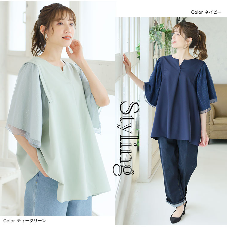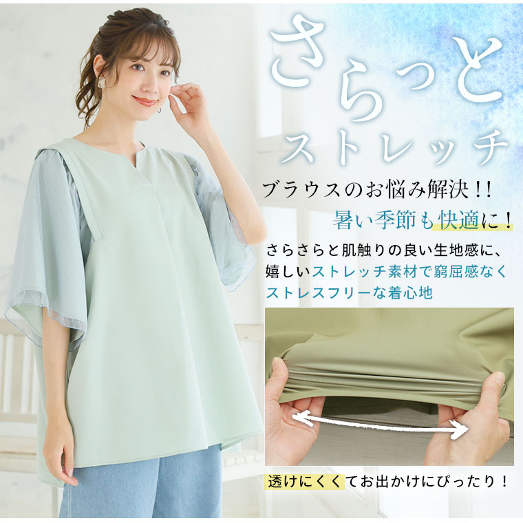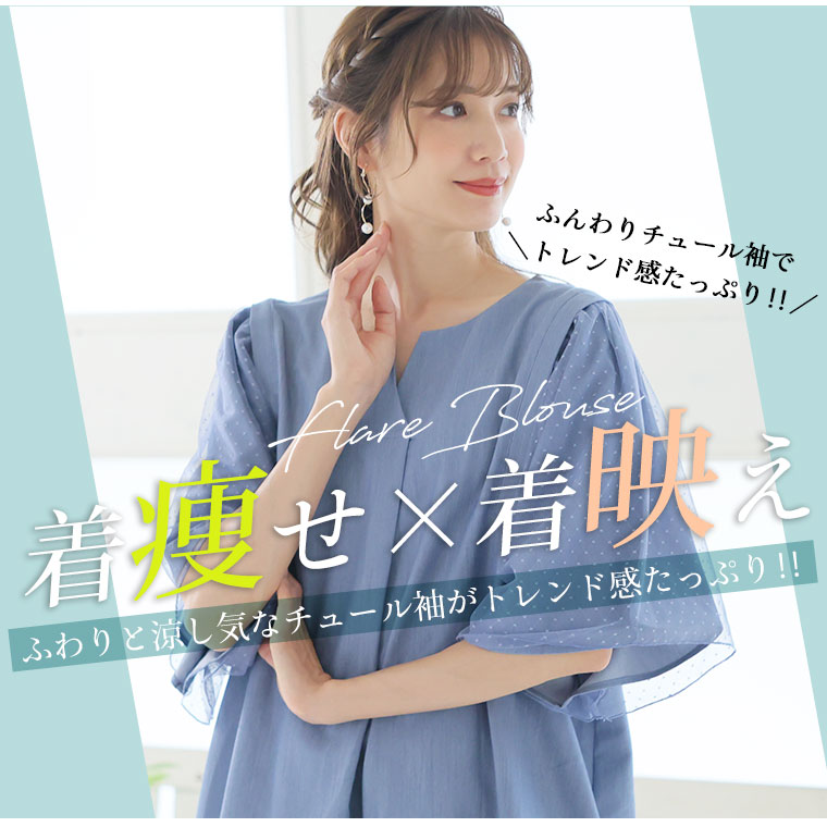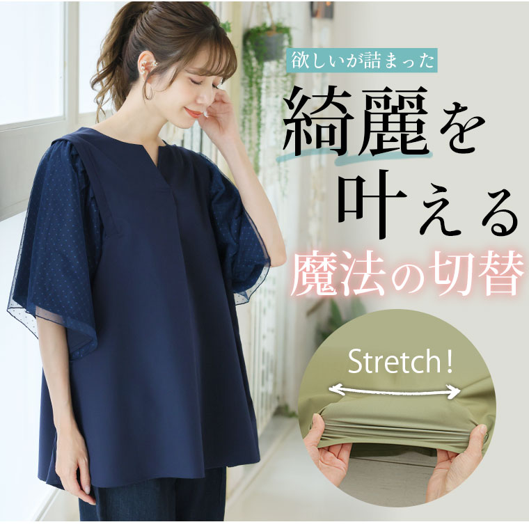 魔法のラインでキレイ魅せ!ストレッチ×チュール袖のフレアブラウス