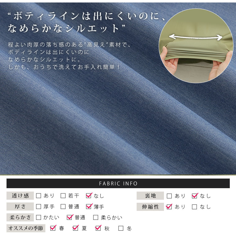 気になるお腹のシルエットも拾わないから、着用時にスッキリ綺麗なシルエットに