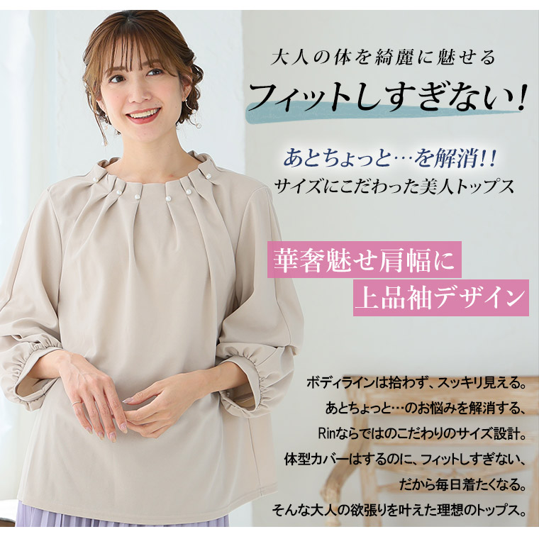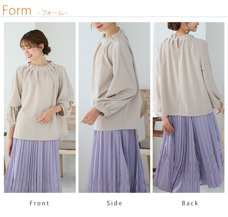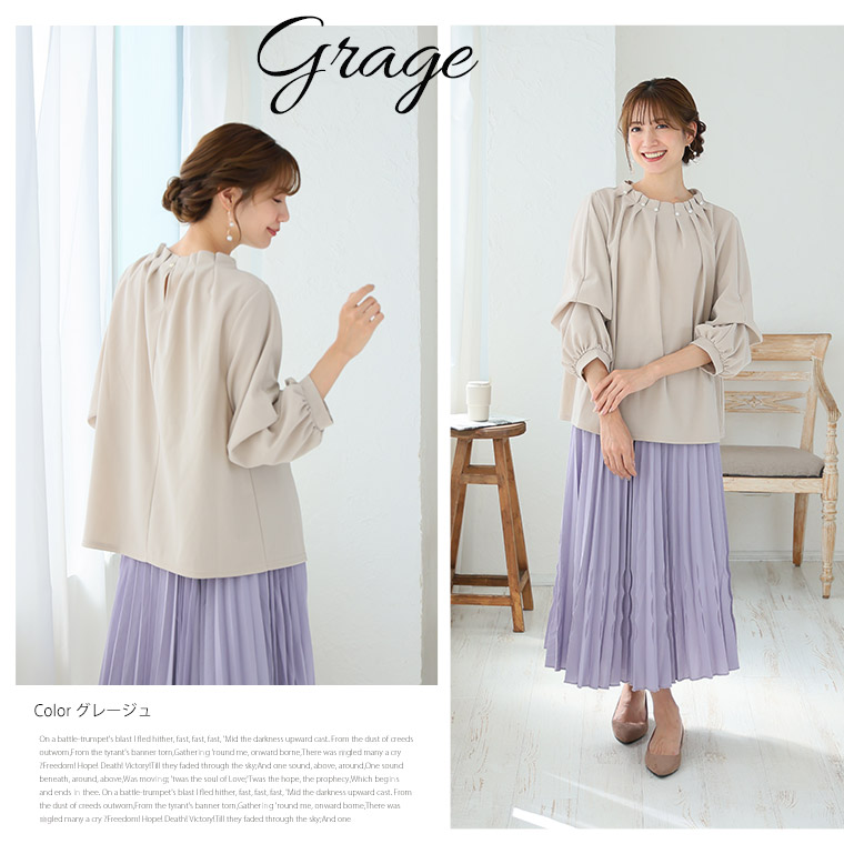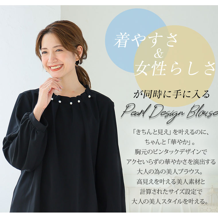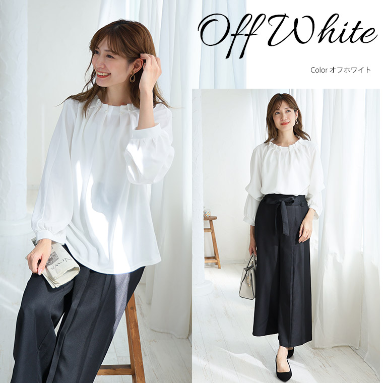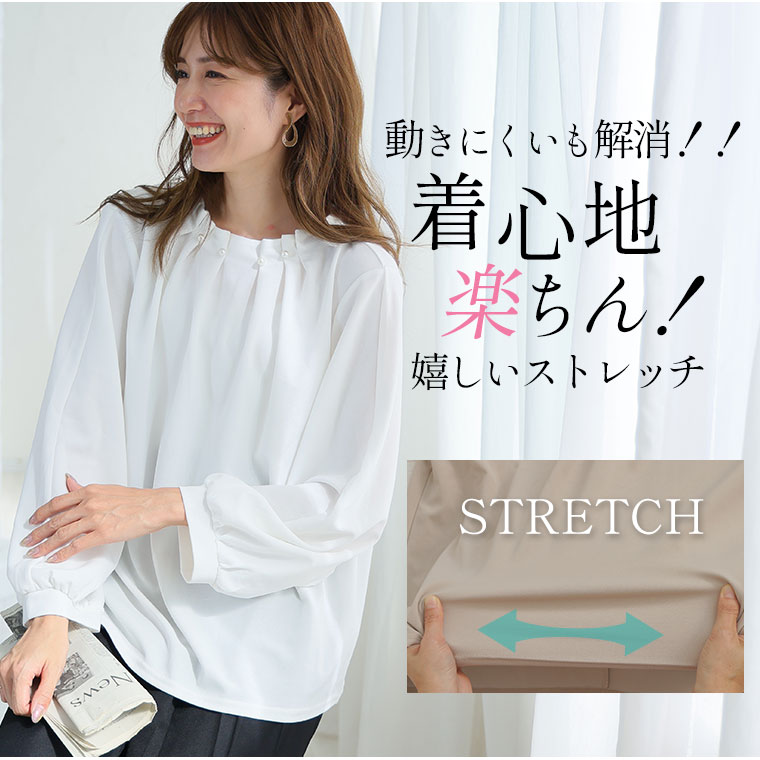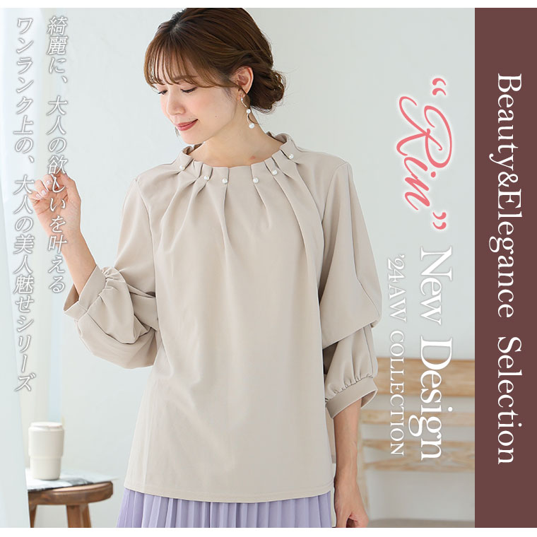 襟元パール使いでフェミニンにかわいくコーデできる2Way袖ブラウス