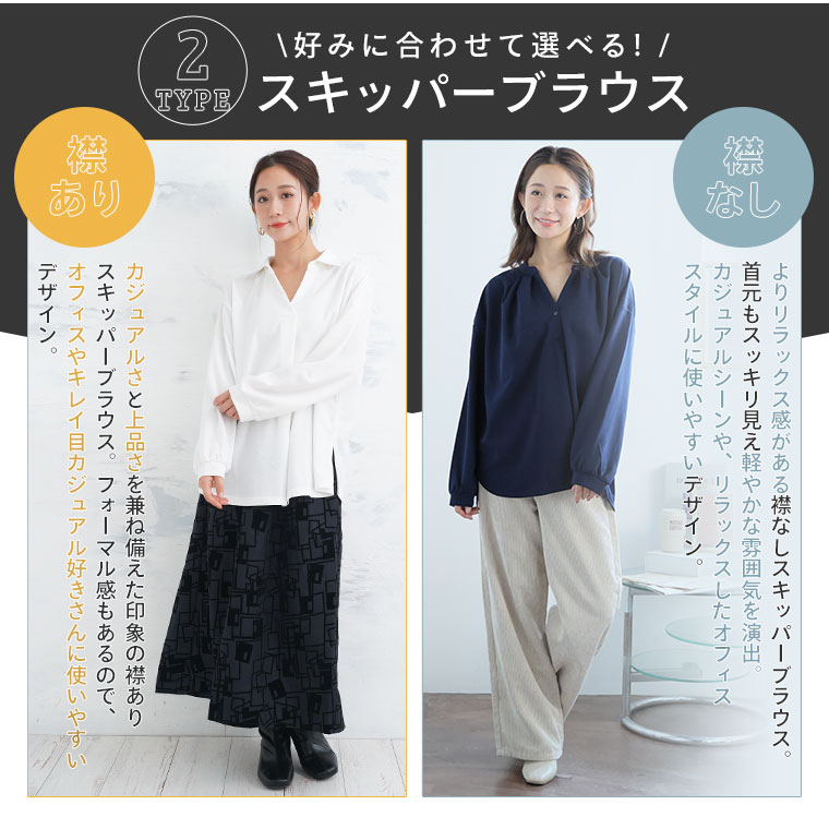 動きやすさ抜群!2TYPEから選べるスキッパーブラウス