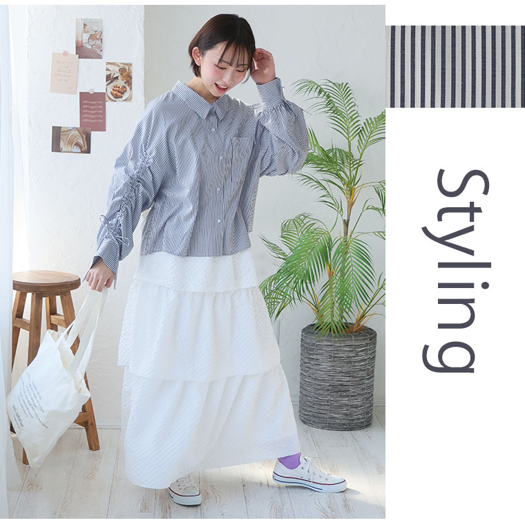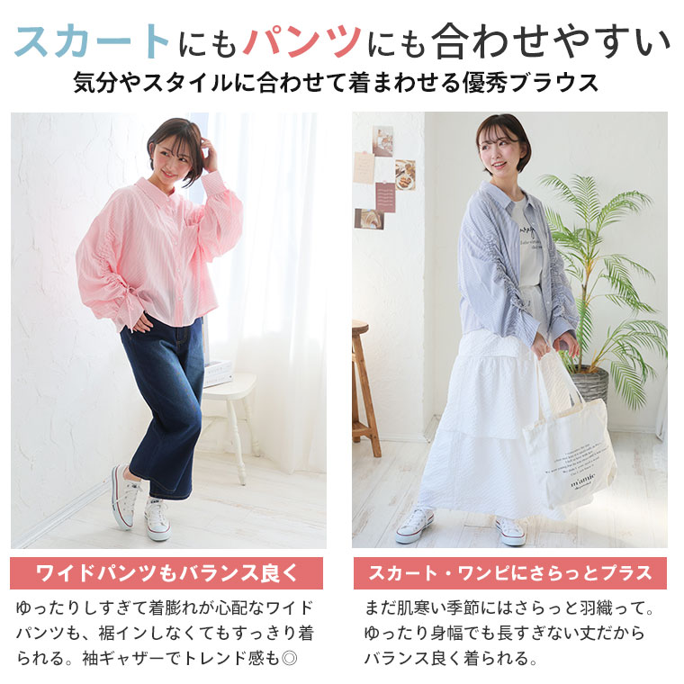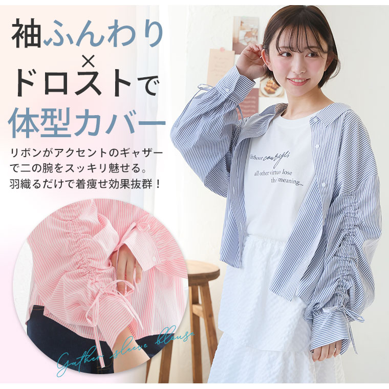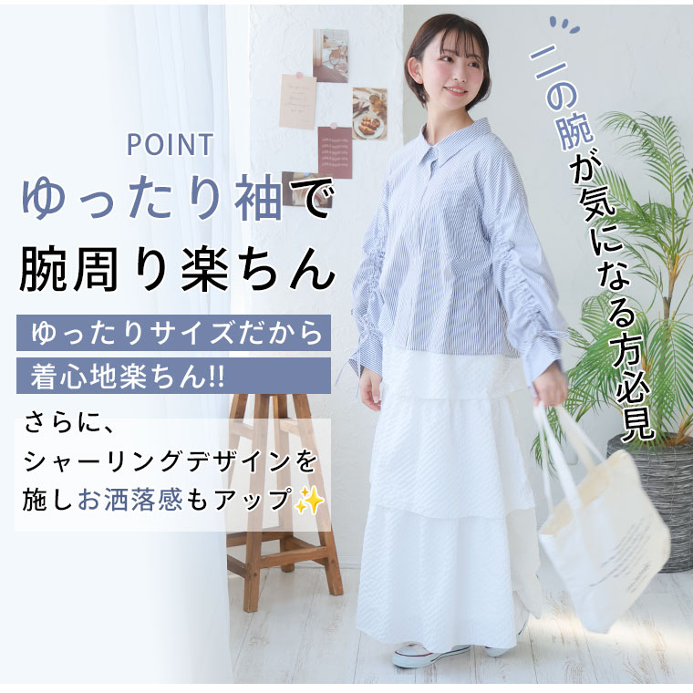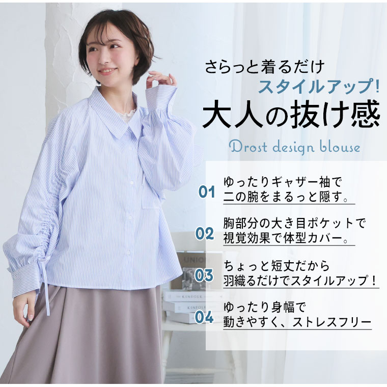 二の腕が気になる方必見!ゆるシルエットドロストボリューム袖シャツ