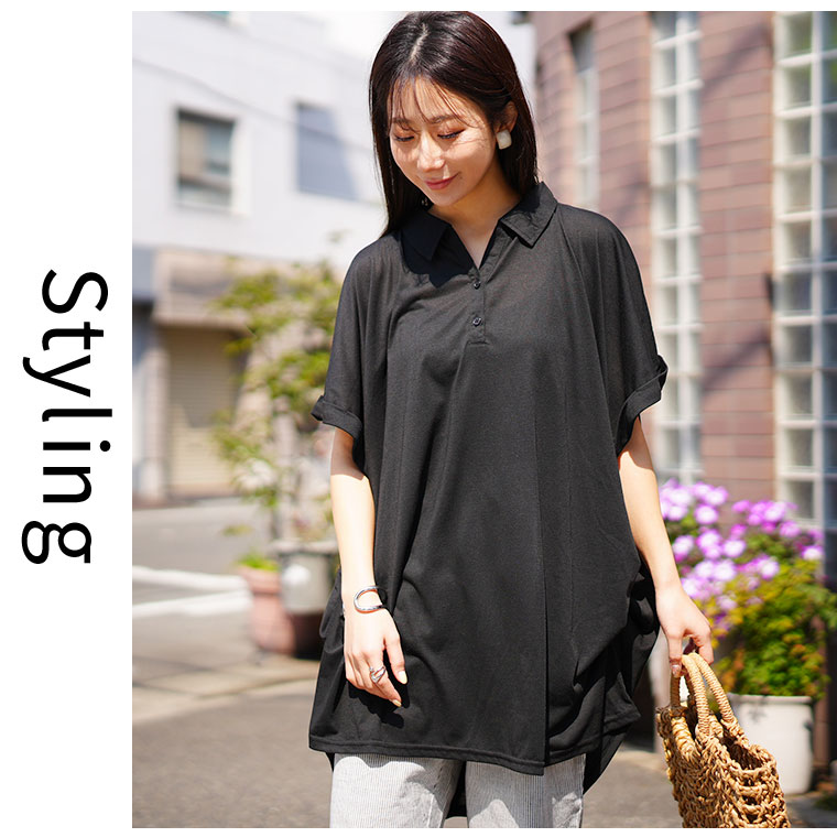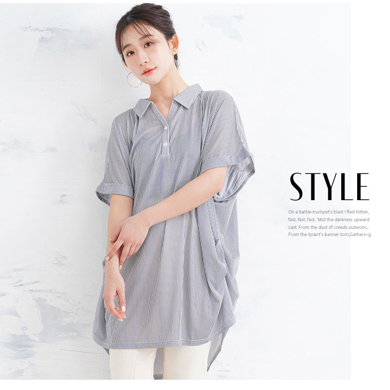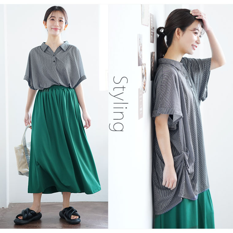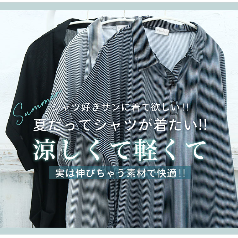 無地とストライプから選べる サラ伸び スキッパーシャツ