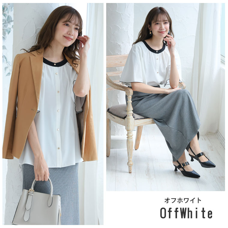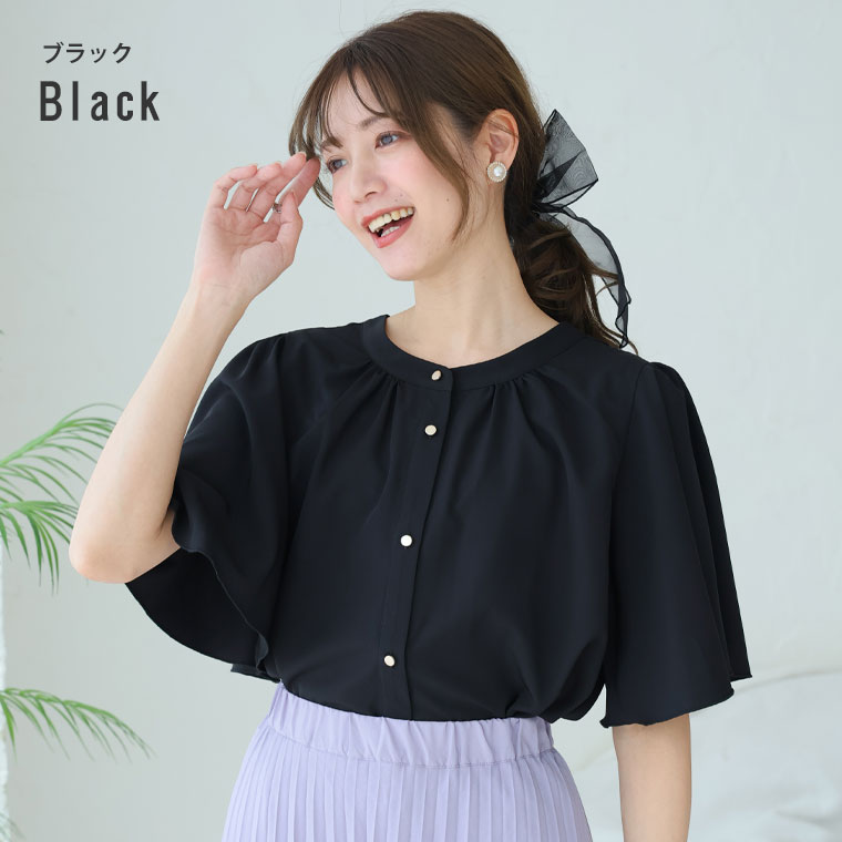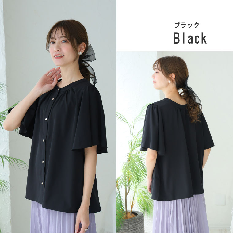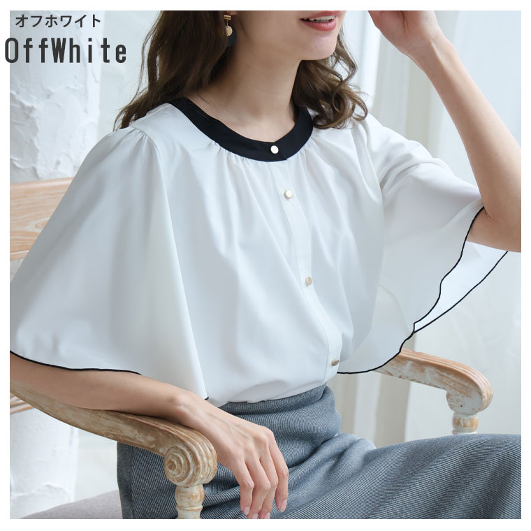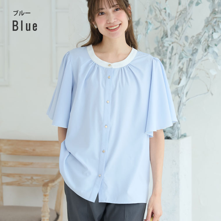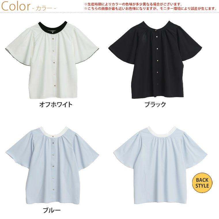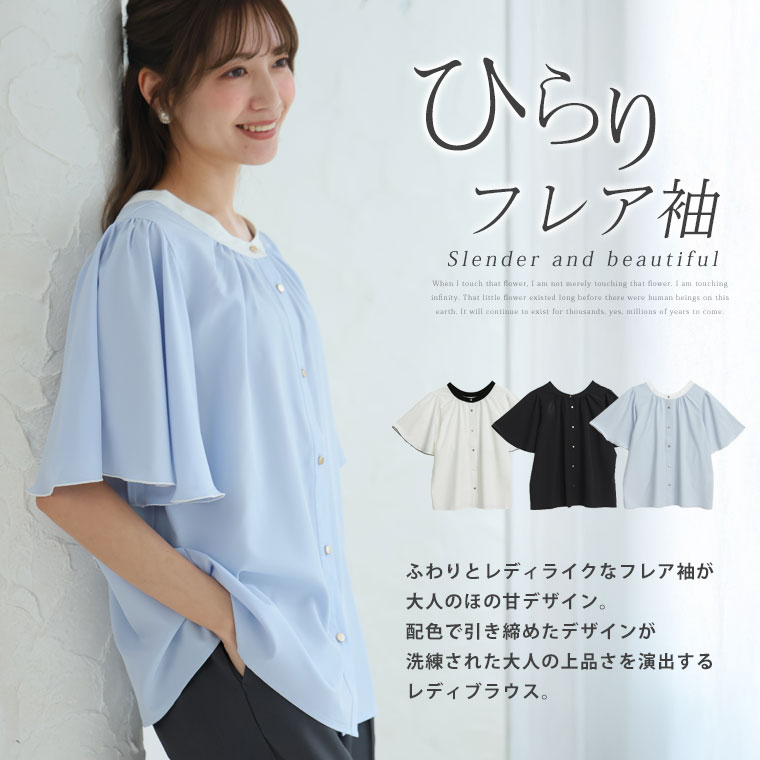 シャツ トップス LL 3L 4L 5L 6L 半袖 夏 夏物 夏服 夏用 ぽっちゃり ゆったり プラスサイズ かわいい おしゃれ カジュアル ナチュラル Rin 洗練配色で上品!! フレア袖 ブラウス