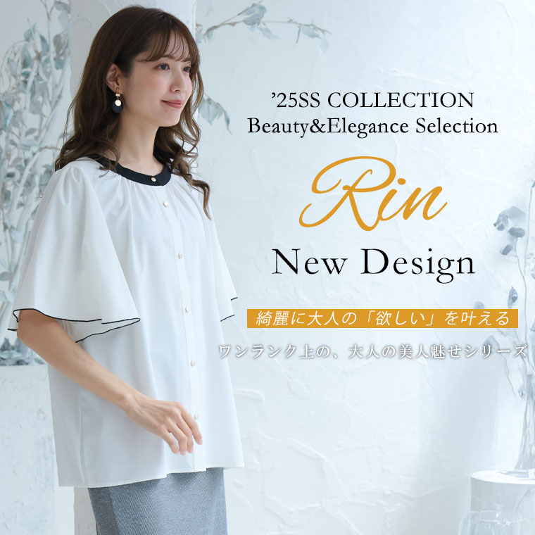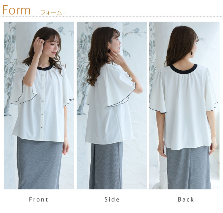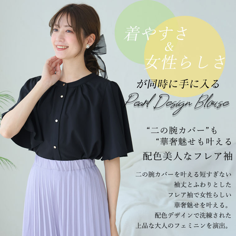 大きいサイズ Rin 洗練配色で上品!! フレア袖 ブラウス