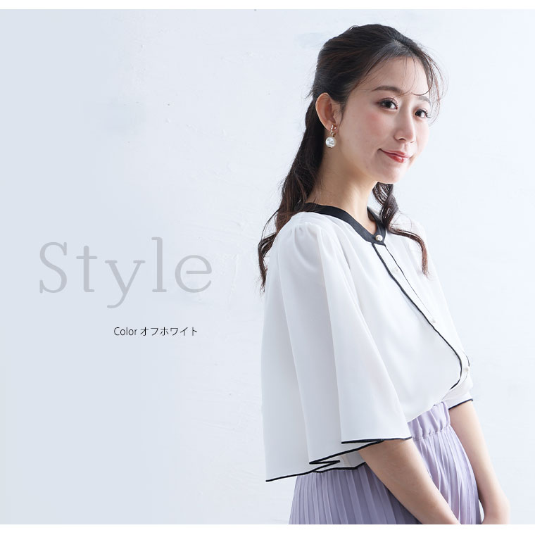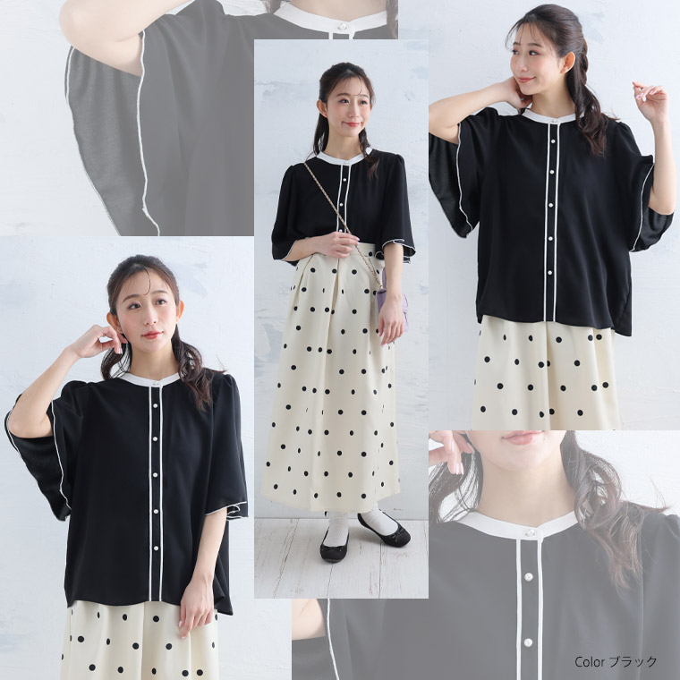 4. 大きいサイズ Rin 配色 フレア袖 ポーラ ブラウス