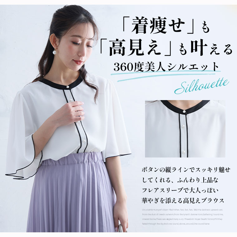 3. 大きいサイズ Rin 配色 フレア袖 ポーラ ブラウス