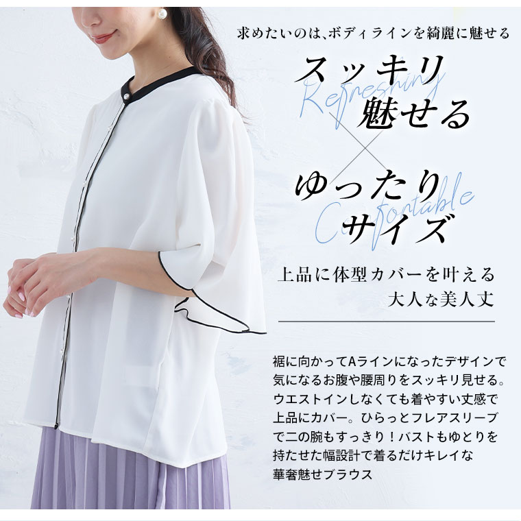 大きいサイズ Rin 配色 フレア袖 ポーラ ブラウス