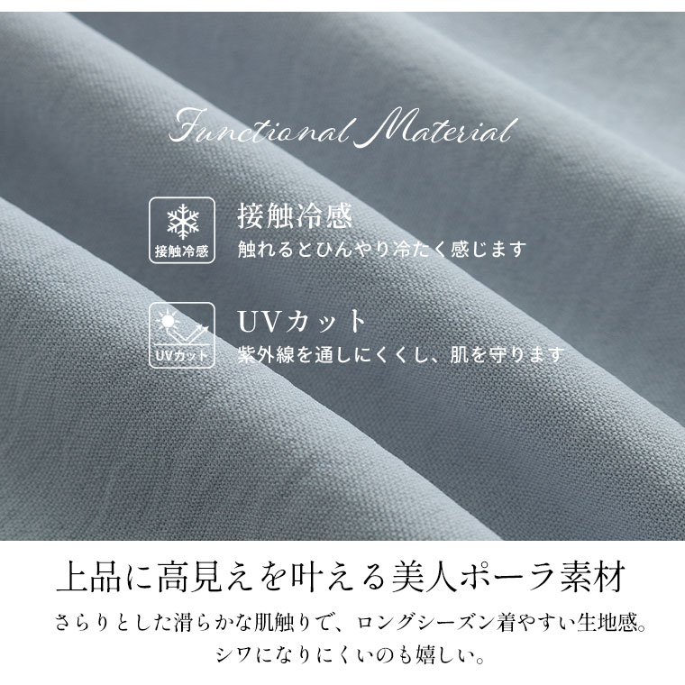 ブルーを購入しました。肌触りはサラサラで、洗濯してもシワにならず、とても重宝しています。接触冷感なので、ものすごく暑い日でも、汗が抑えられて助かってます。同色を追加購入したかったのですがもう完売でした。