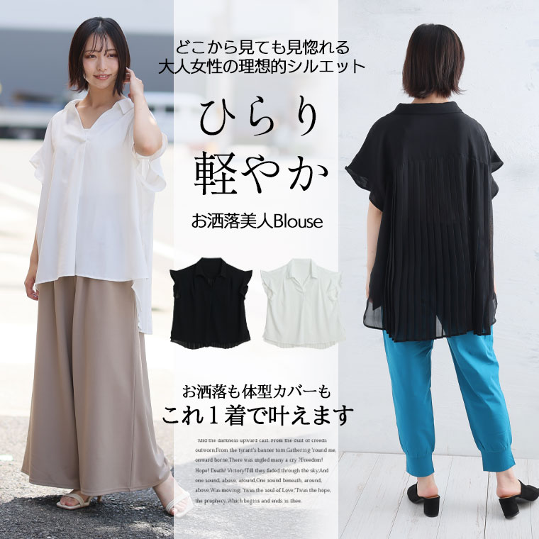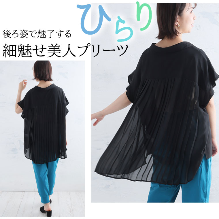気になる「背中」「腰回り」も、ひらりと揺れるプリーツでさり気なくカバー。
