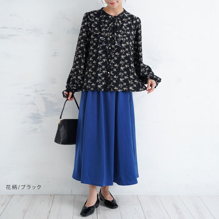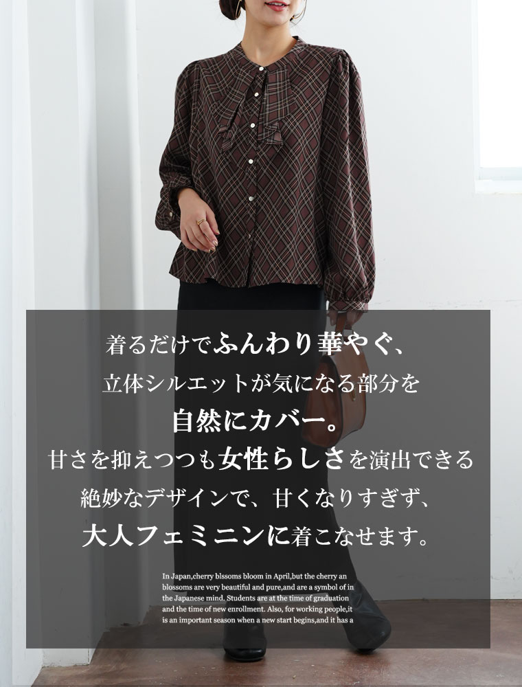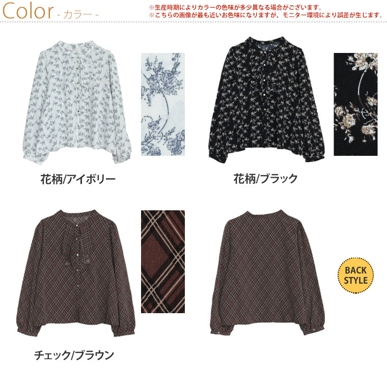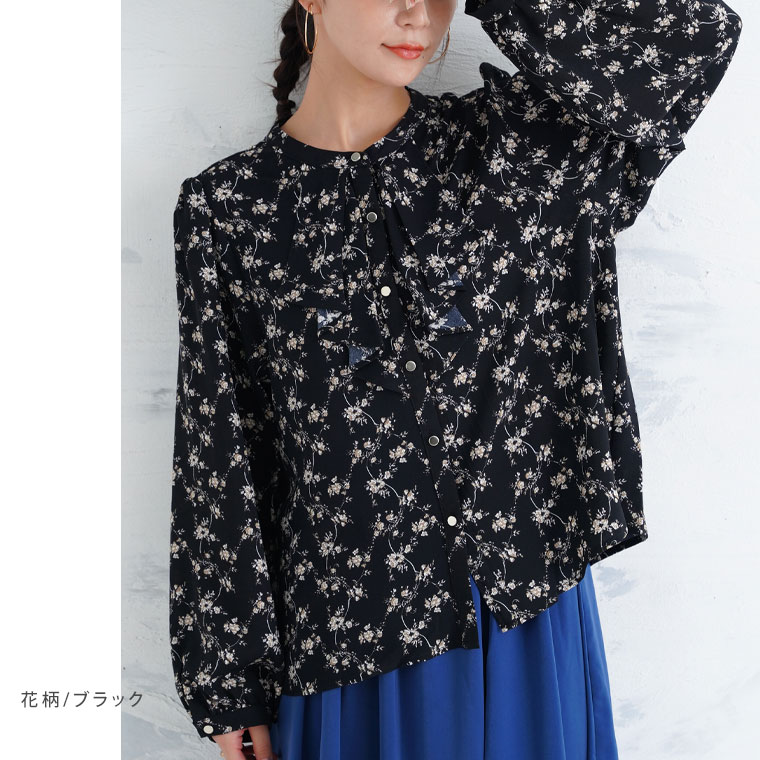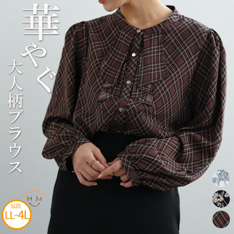 シャツ トップス LL 3L 4L 長袖 秋 秋物 秋服 冬 冬物 冬服 ぽっちゃり ゆったり プラスサイズ フェミニン ガーリー かわいい ケープデザイン フロントフリルブラウス 花柄 チェック