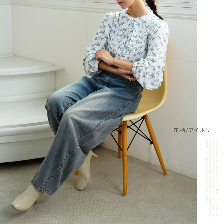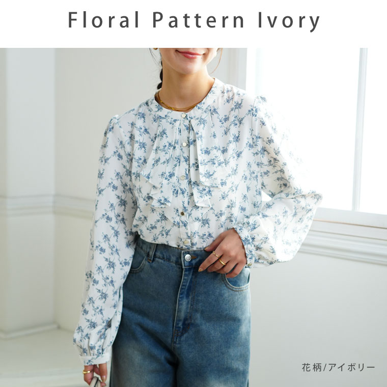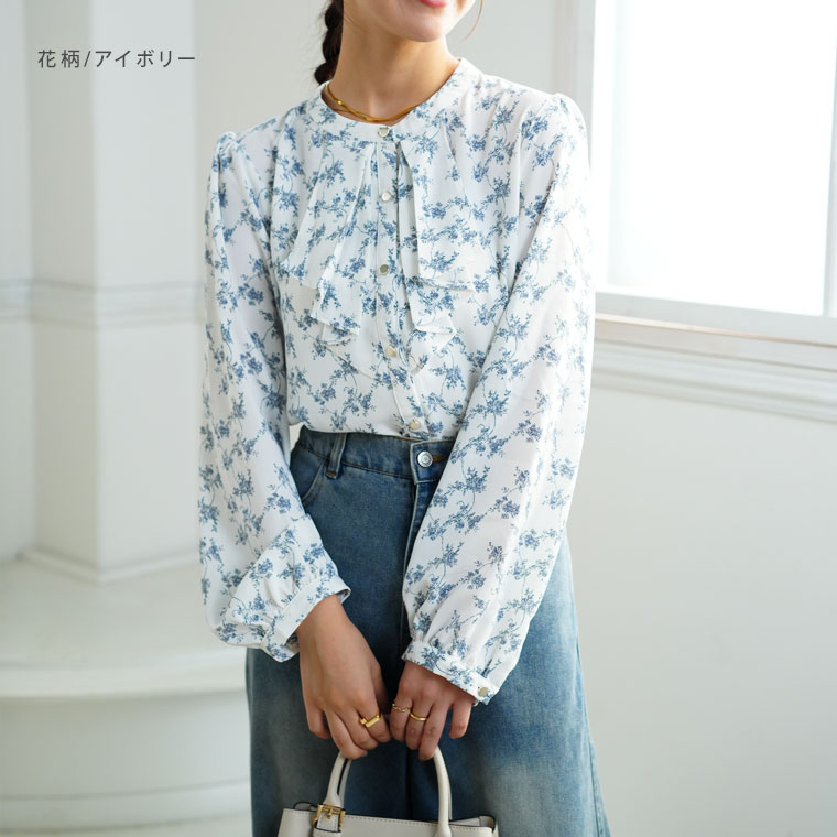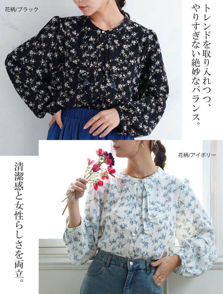 大きいサイズ フロントフリルブラウス 花柄 チェック