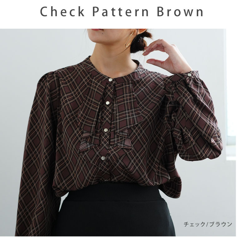 6. 大きいサイズ フロントフリルブラウス 花柄 チェック