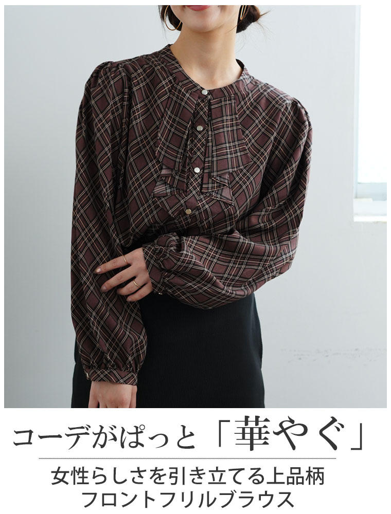 4. 大きいサイズ フロントフリルブラウス 花柄 チェック