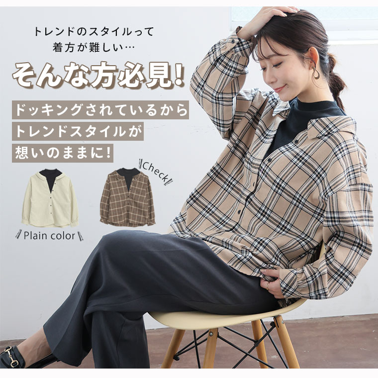 お洒落な重ね着風シャツの着こなしがこれ1枚で完成!