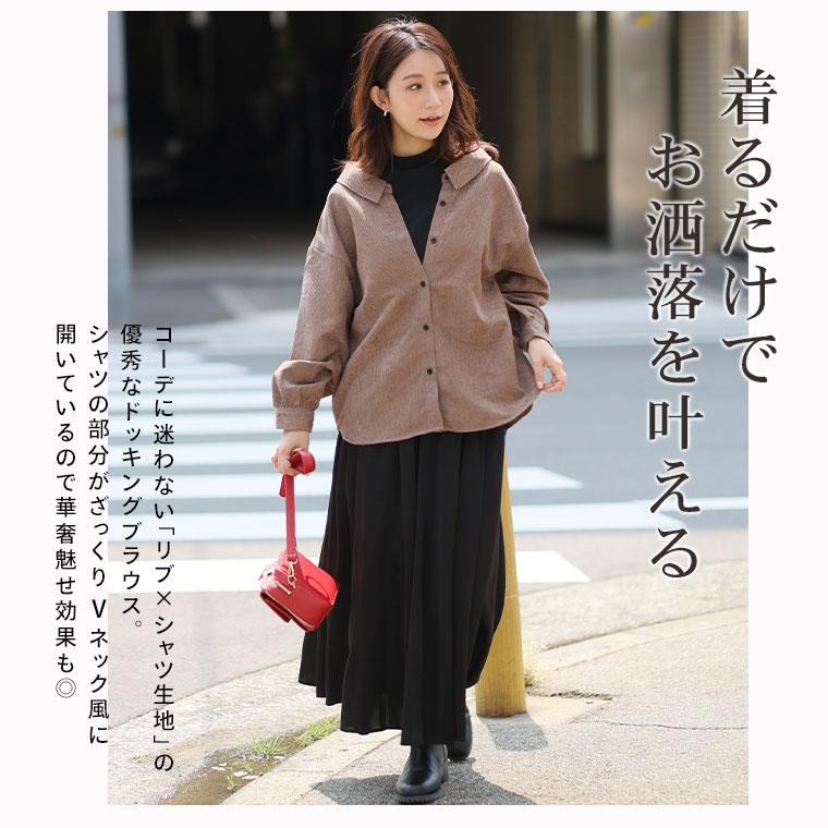 スポッと着るだけで抜け襟デザインのこなれたシャツスタイルが楽しめる