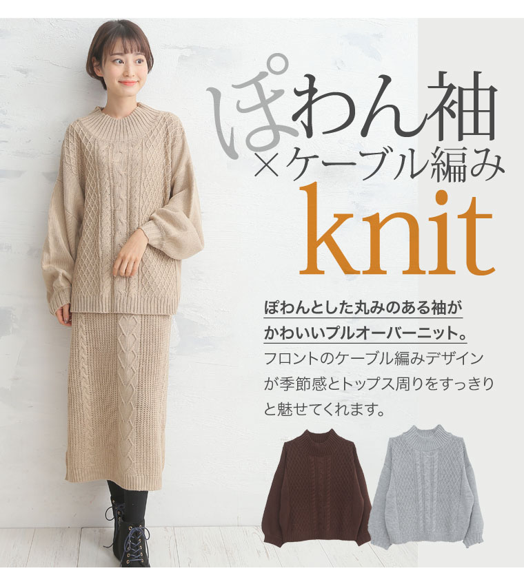 ゆったりとしたシルエットとボリュームスリーブが大人かわいい♪ニットプルオーバー