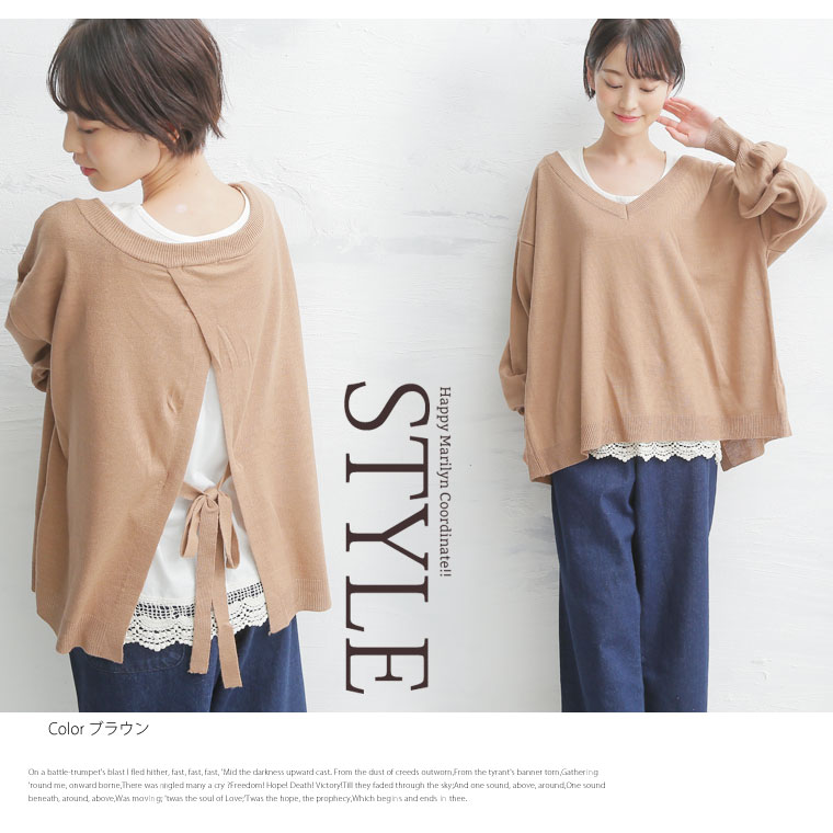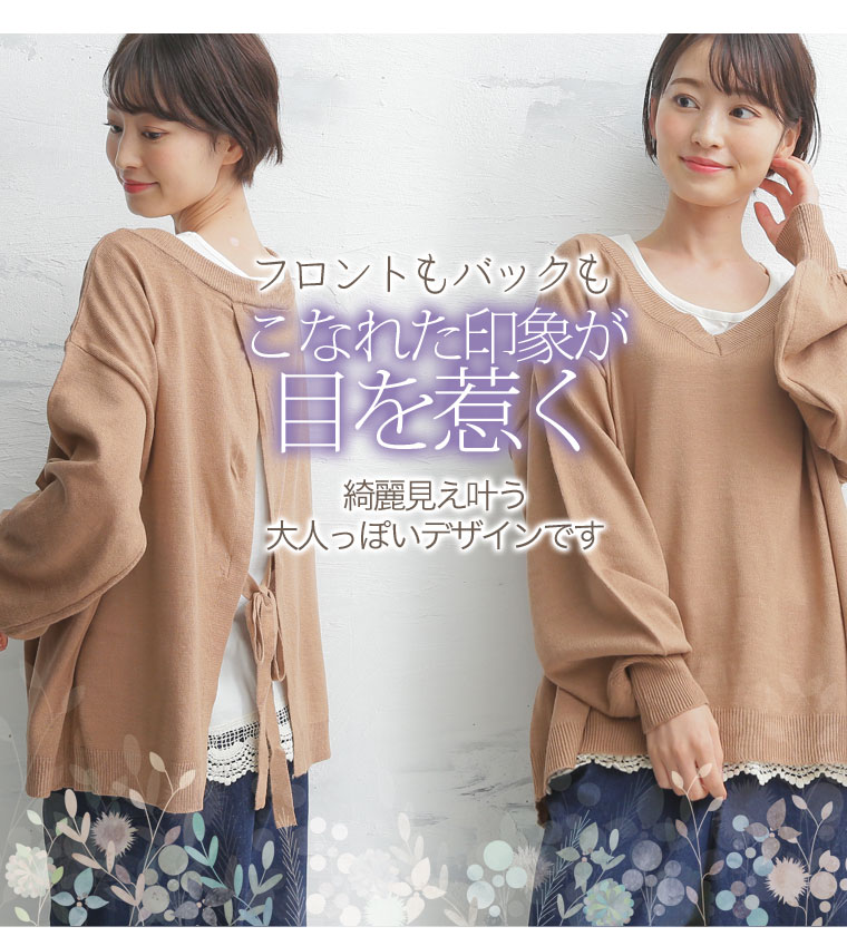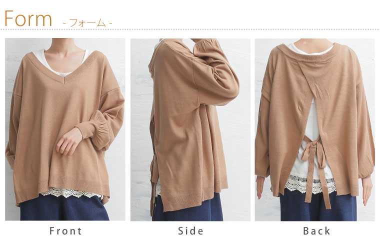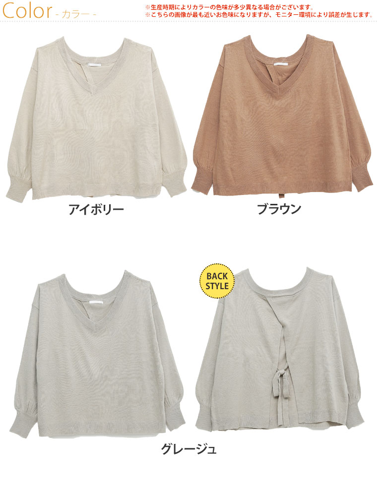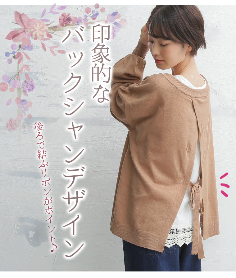 バックリボンでこなれ感UP♪ぽわん袖リボンバックジャンニット