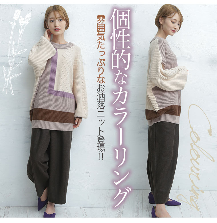 もっちり肌触りの良い生地が嬉しい♪個性的なカラーリングのニット