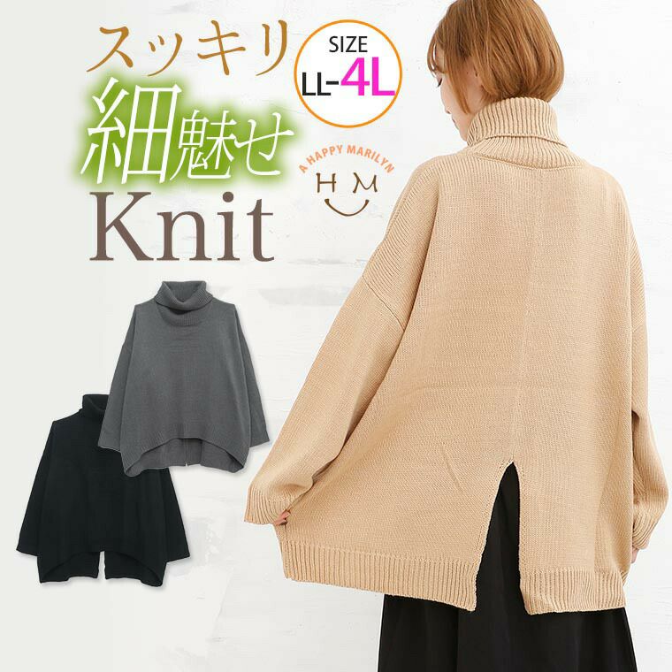 トップス 二ットソー プルオーバー LL 3L 4L 秋 秋物 秋服 冬 冬物 冬服 ぽっちゃり ゆったり かわいい おしゃれ カジュアル ナチュラル オフタートル バックスリット ルーズニット | 大きいサイズの通販ならハッピーマリリン