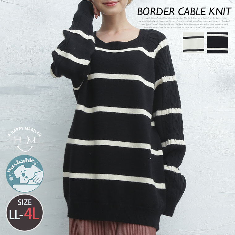 プルオーバー LL 3L 4L 秋 秋物 秋服 冬 冬物 冬服 ぽっちゃり ゆったり かわいい おしゃれ カジュアル ナチュラル きれいめ 上品 ガーリー 袖 ケーブル ラグラン ニット シンプルボーダー