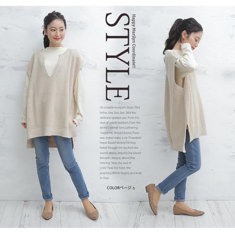 ぽっちゃりさんに嬉しい春ベスト。バックスタイルも手を抜かない、お洒落度を上げるボタンつき。