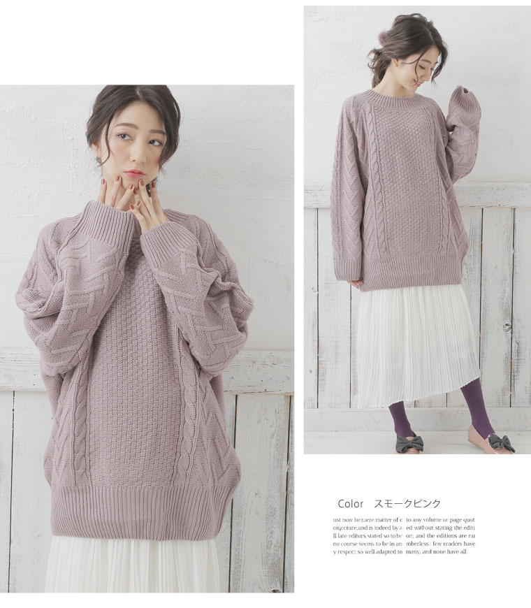 ケーブル編みで季節感たっぷりのほっこりスタイル♪ハイネックプルオーバー
