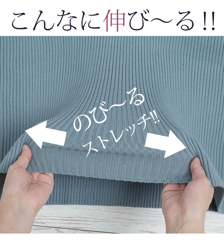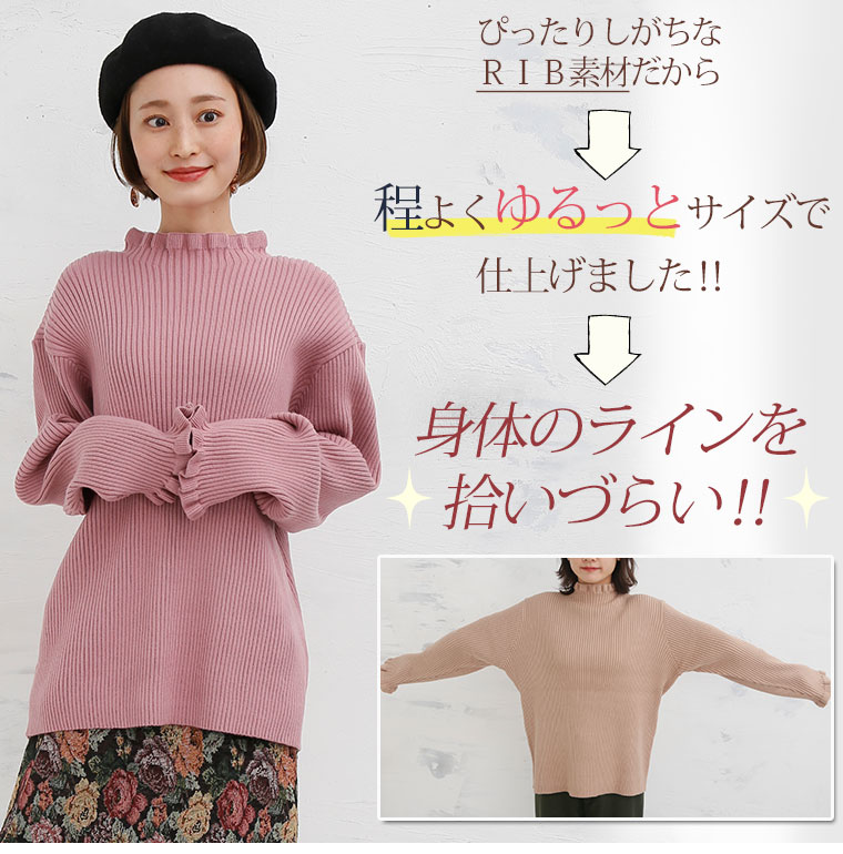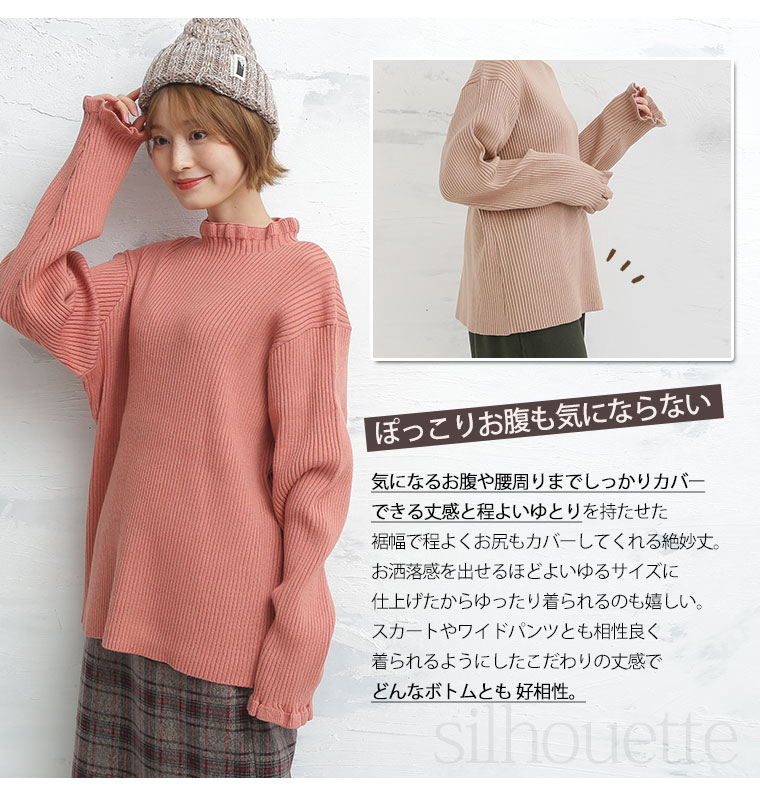 締め付け感がなくゆったり着られる身体のラインを拾いにくい優秀リブニット。