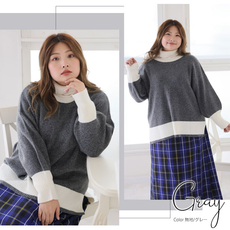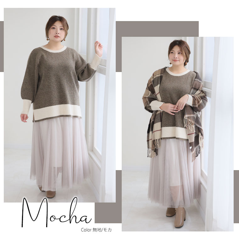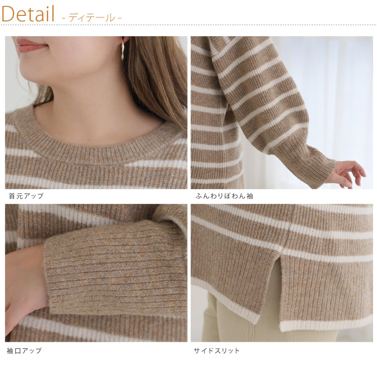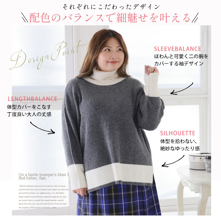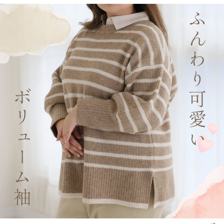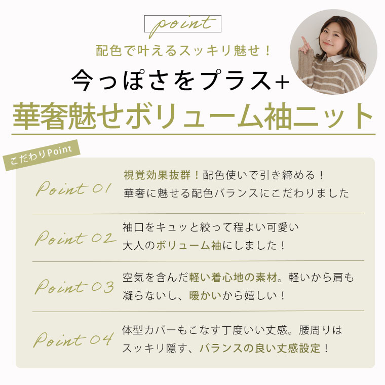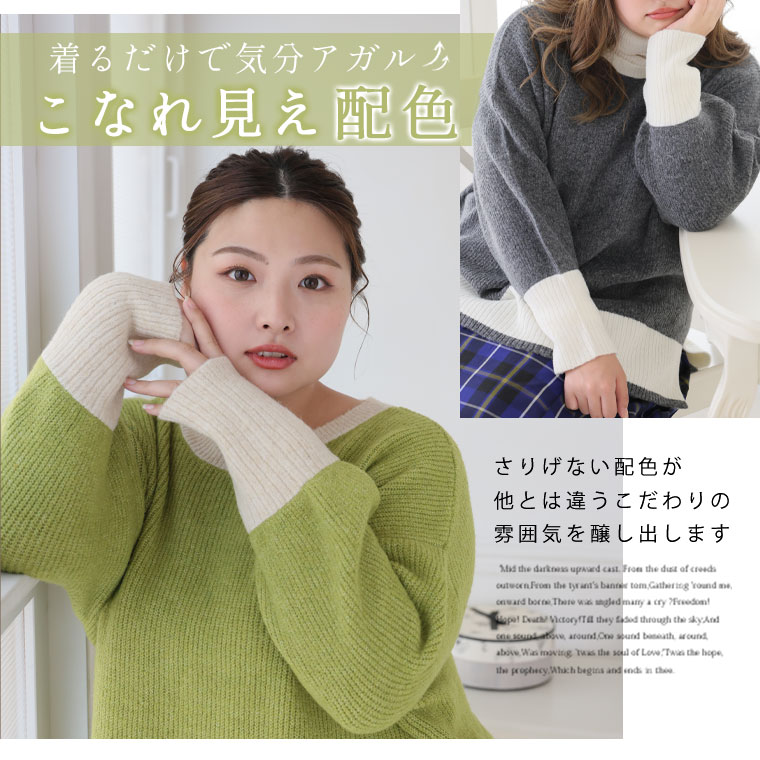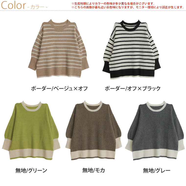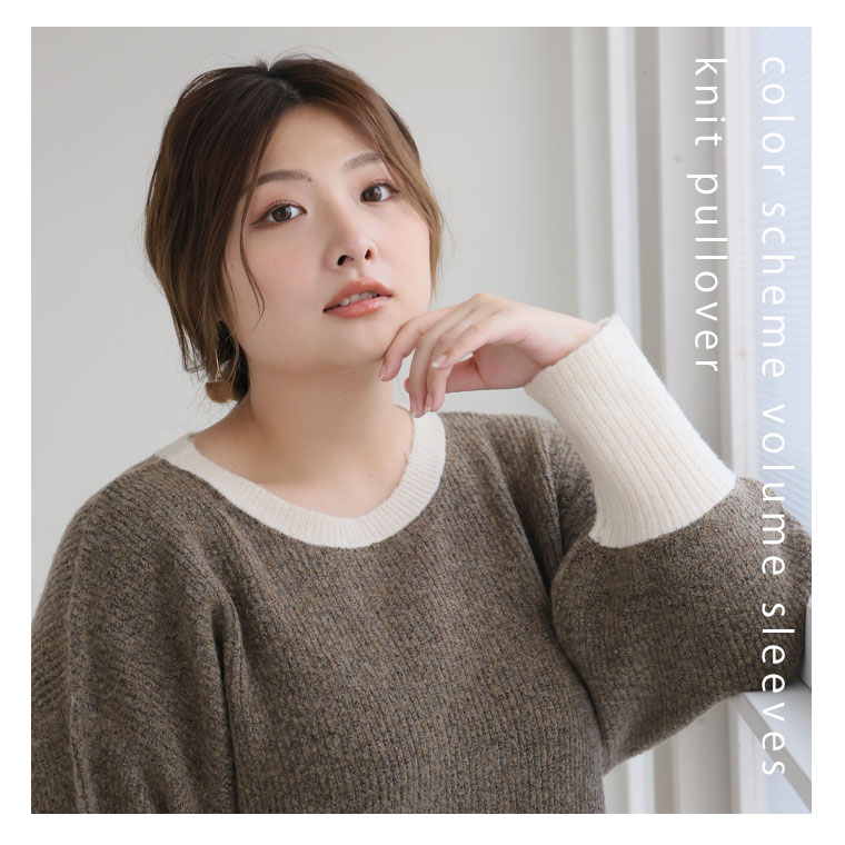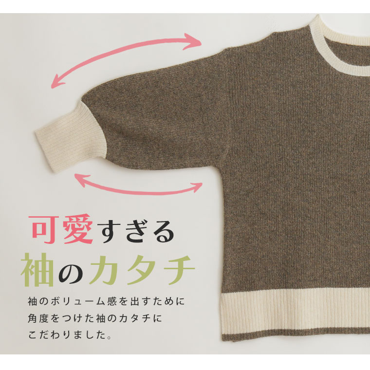 【ラファモプロデュース】配色ボリューム袖ニットプルオーバー