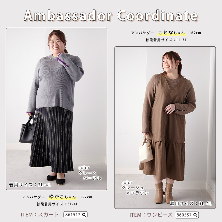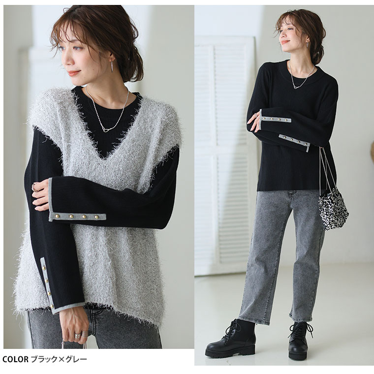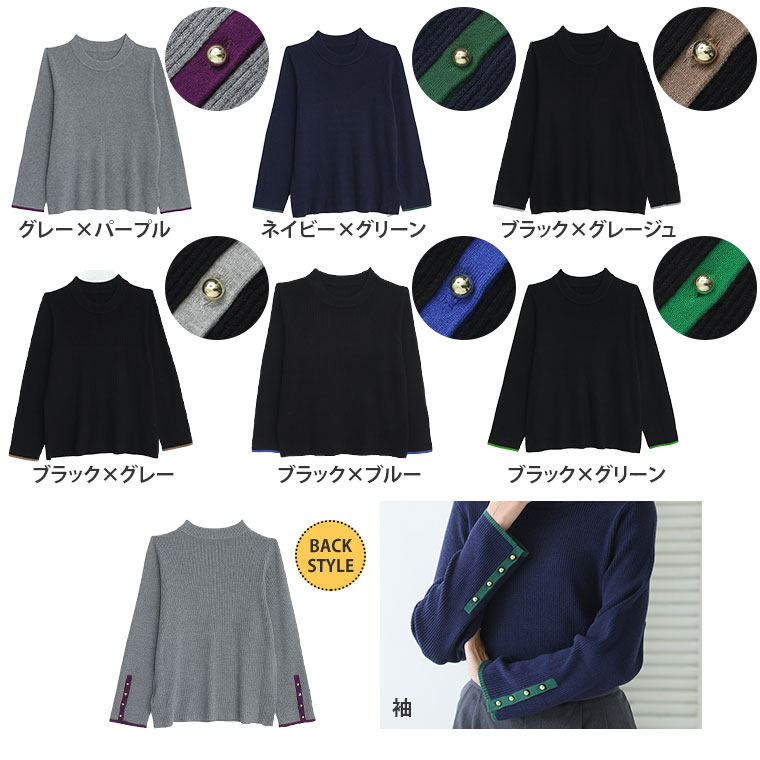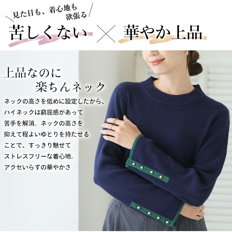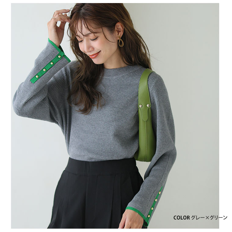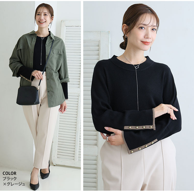 4. 大きいサイズ Rin フィットしすぎない! もっちりリブ 配色美人着回し 袖ボタンニット