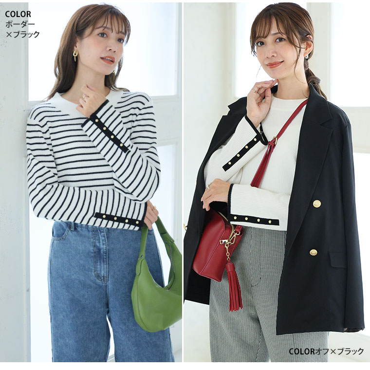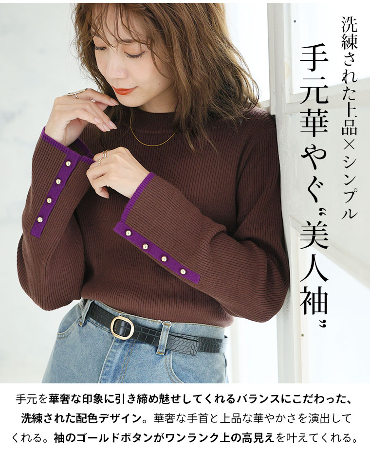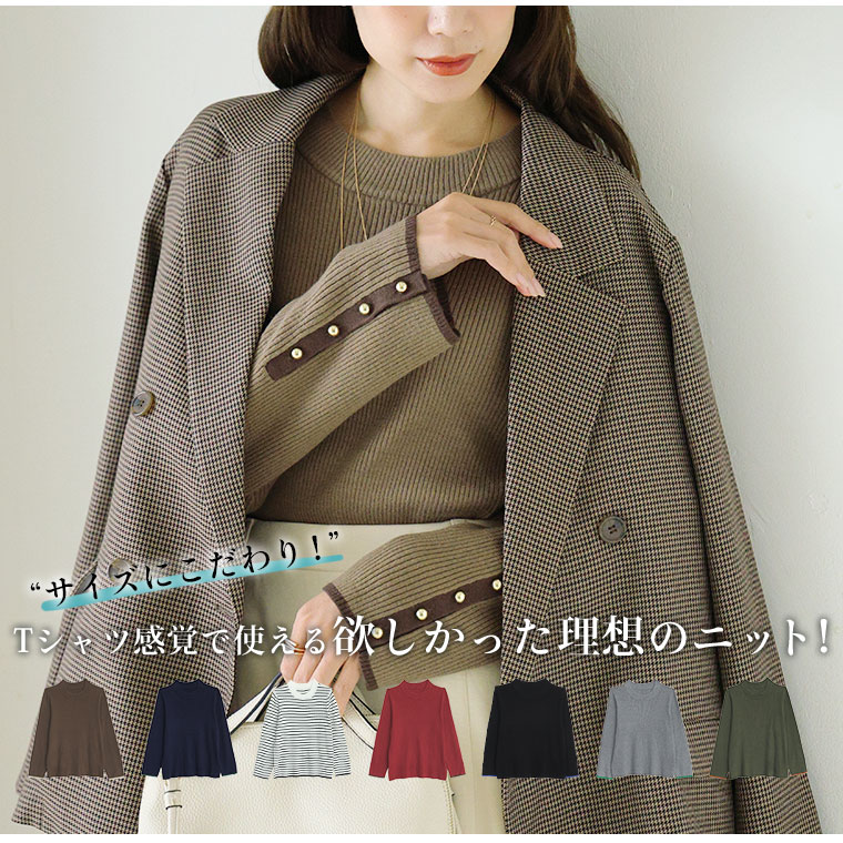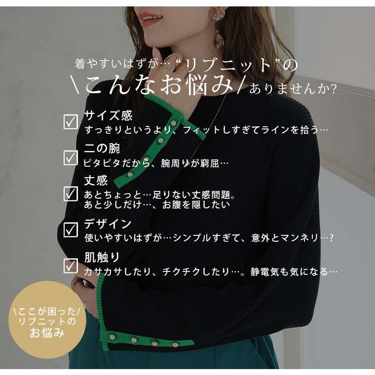 3. 大きいサイズ Rin フィットしすぎない! もっちりリブ 配色美人着回し 袖ボタンニット