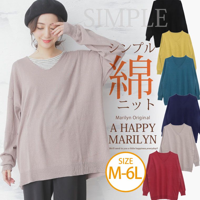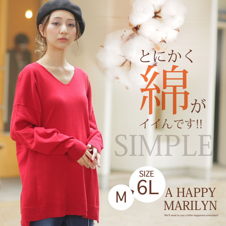 コットン100%生地の優しい肌触りが魅力♪シンプルニットトップス