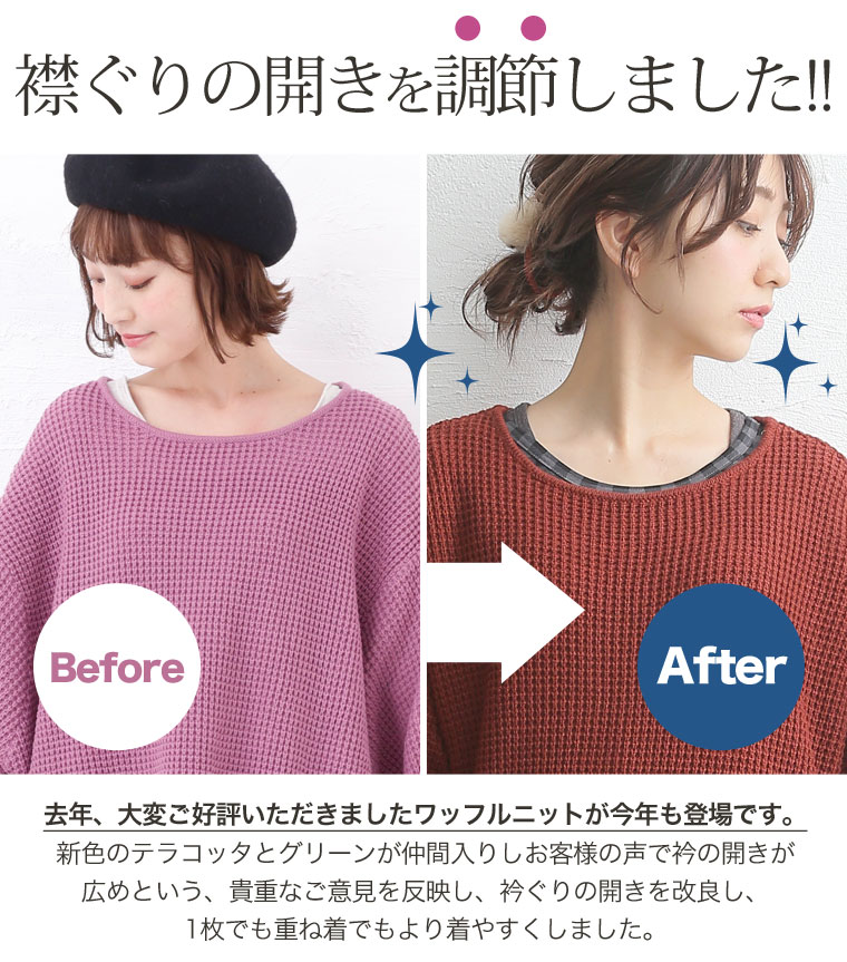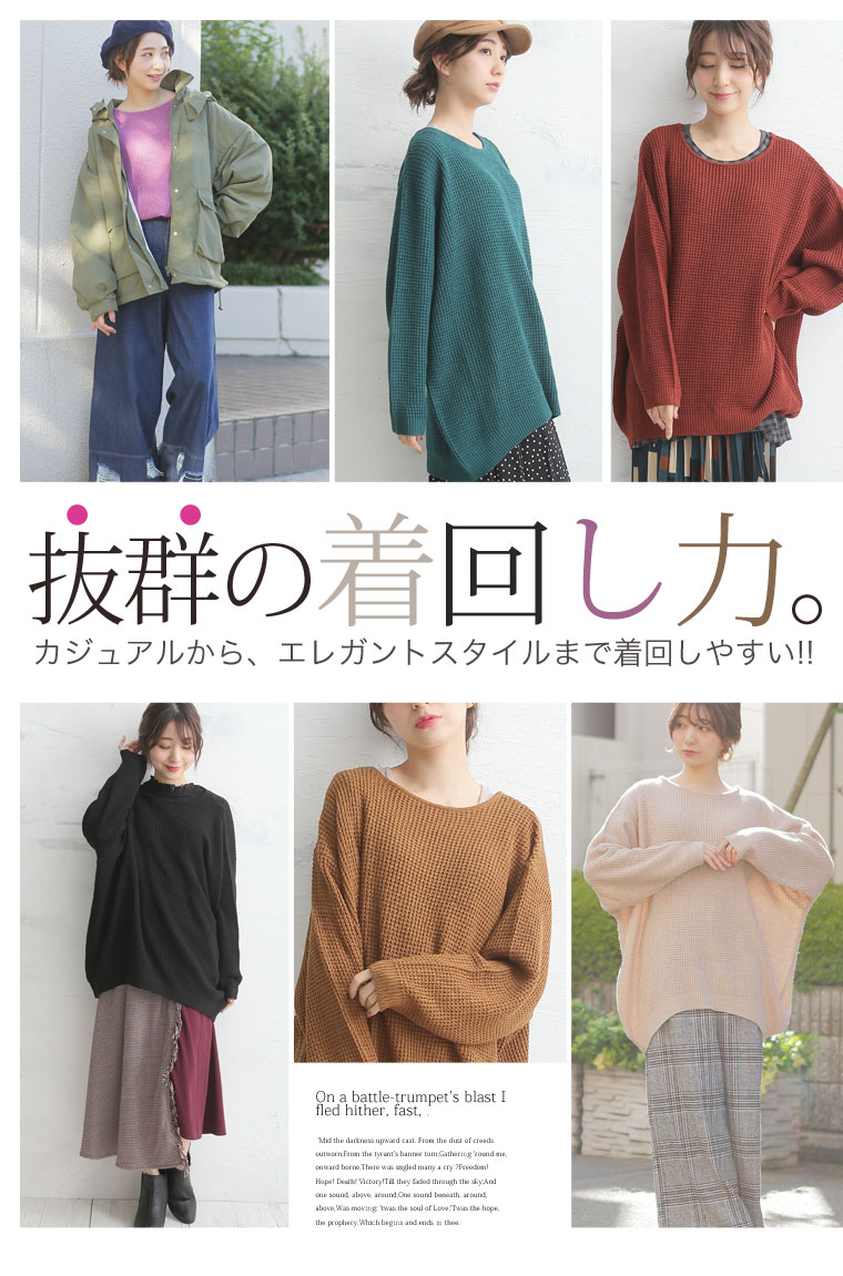 ワッフル編みでほっこりカジュアルに。ゆるっとビッグサイズプルオーバー