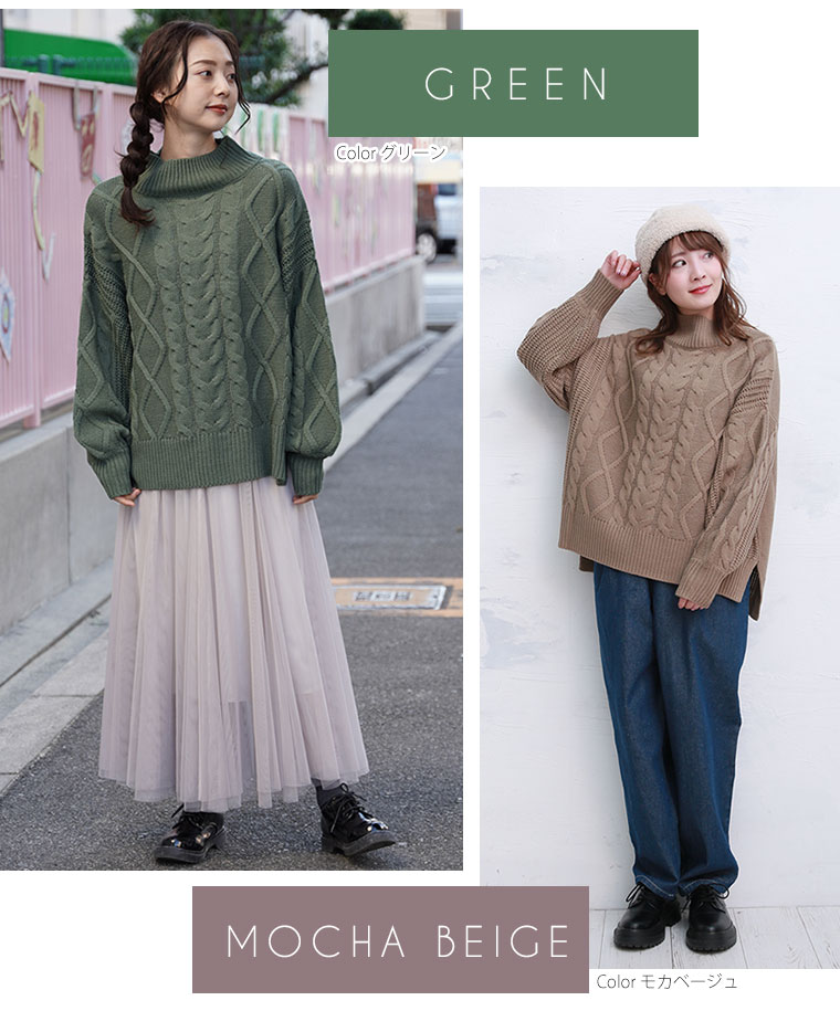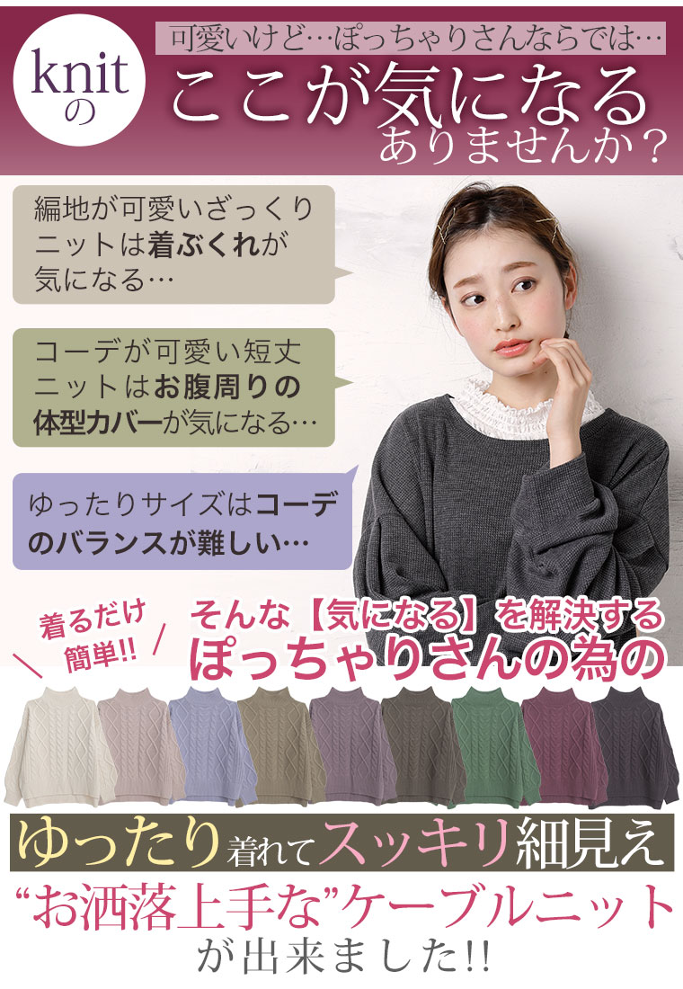 細魅せ美人 ケーブル編み ほの甘美人ゆるニット