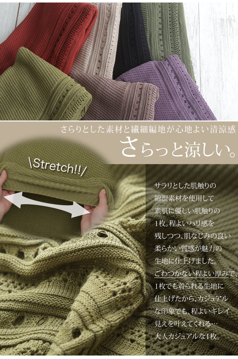涼やかに華奢魅せ叶う 洗練透かし編みトップス