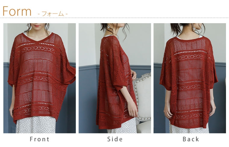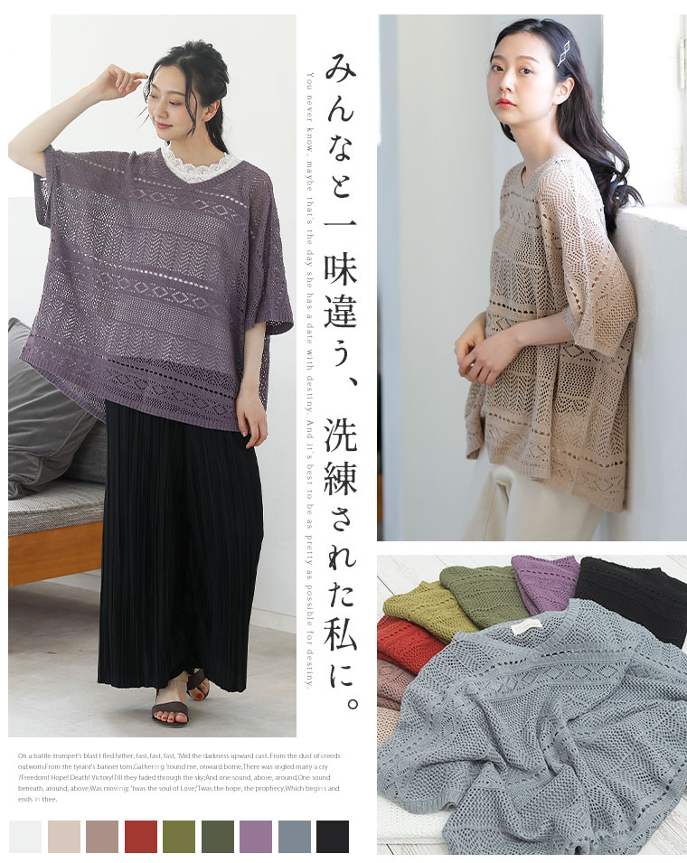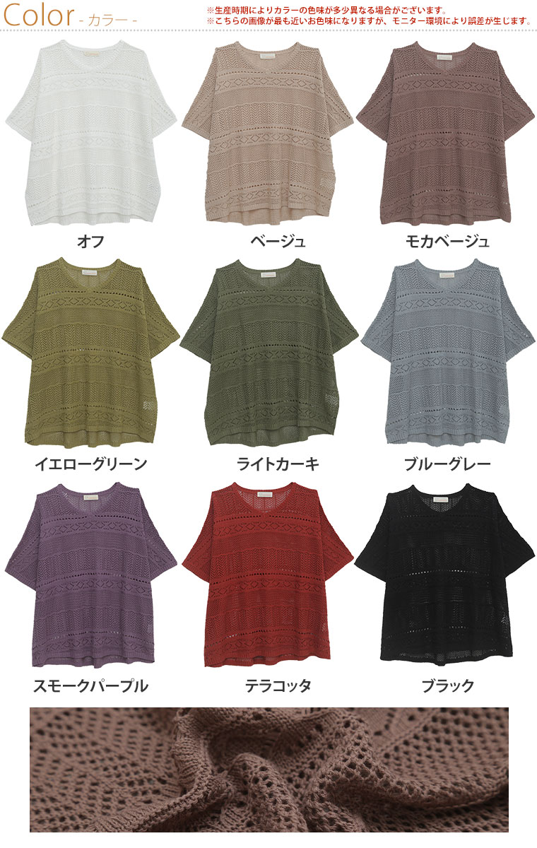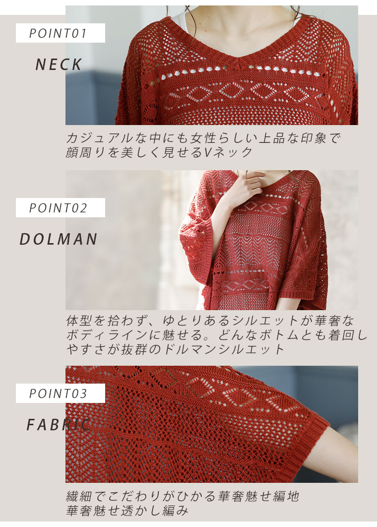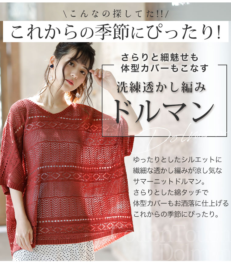 サラリと心地よい 涼しげ透かし編み ドルマンニット