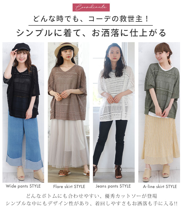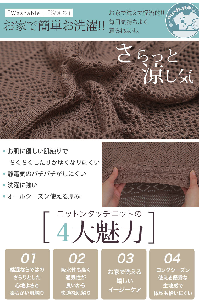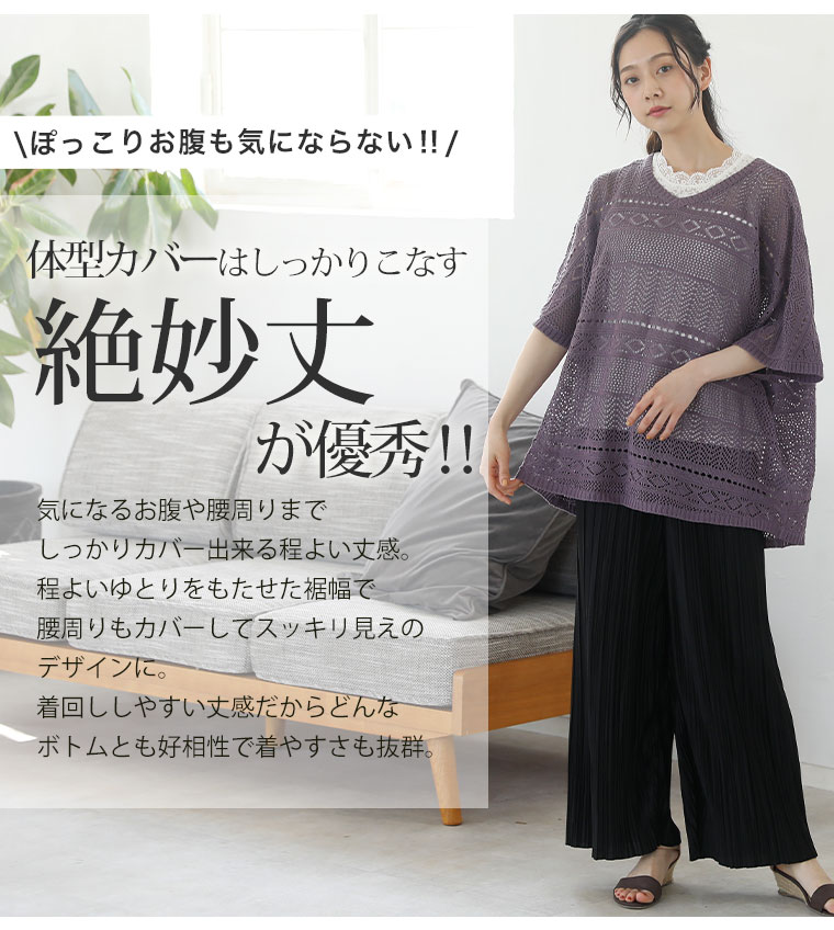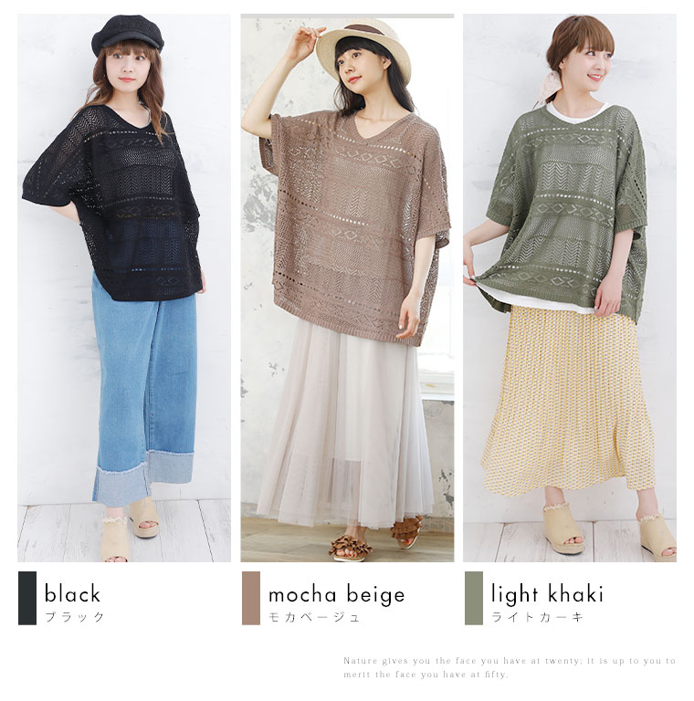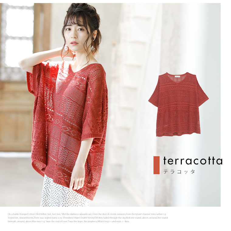 サラリと心地よい 涼しげ透かし編み ドルマンニット