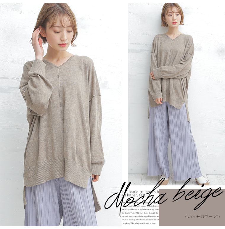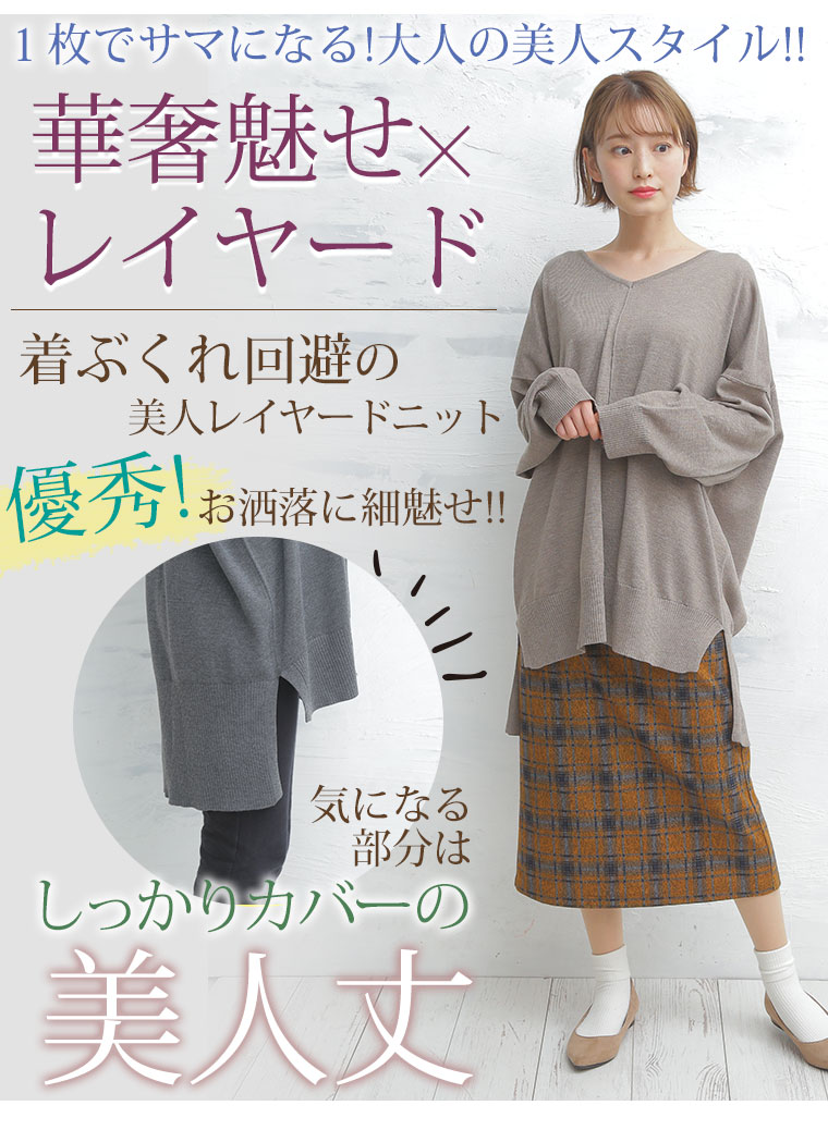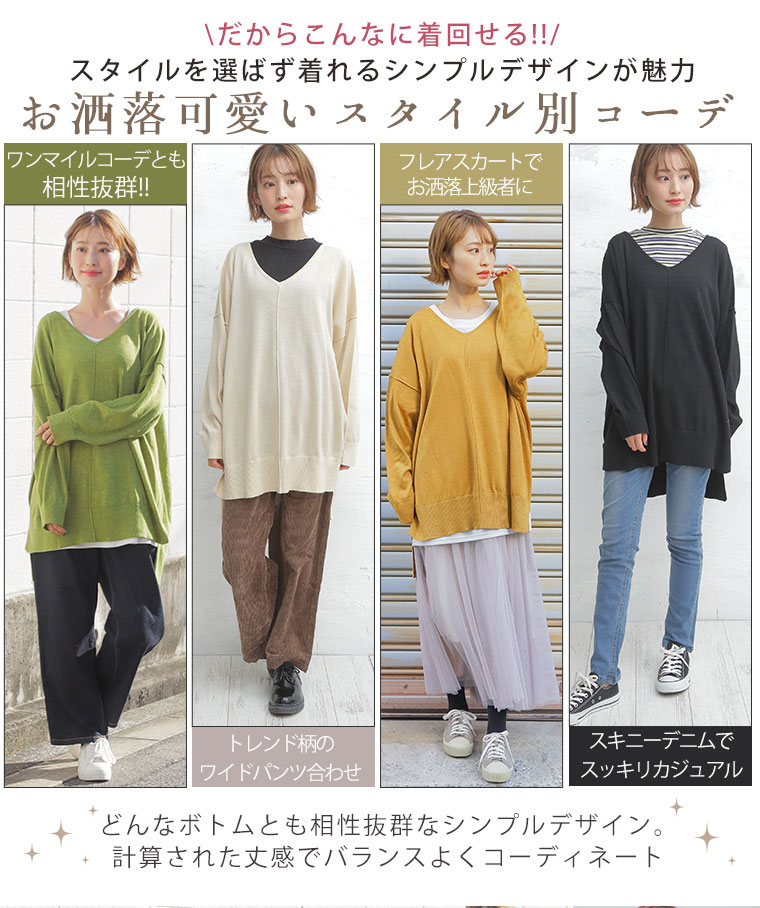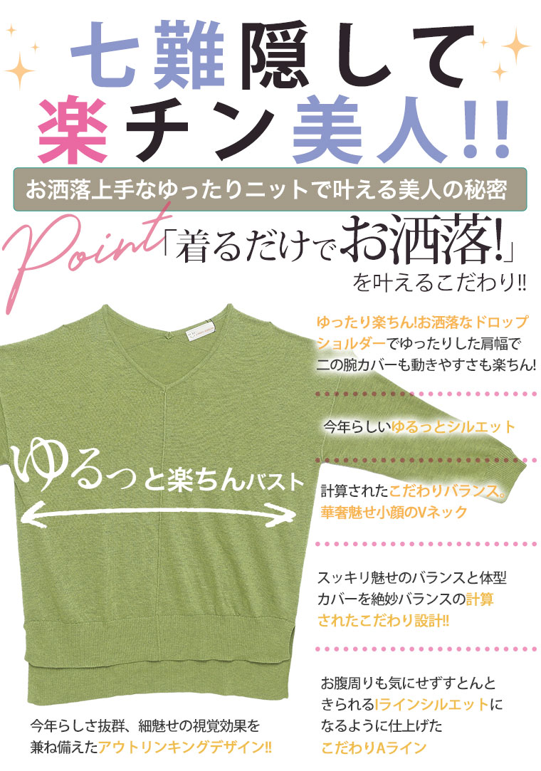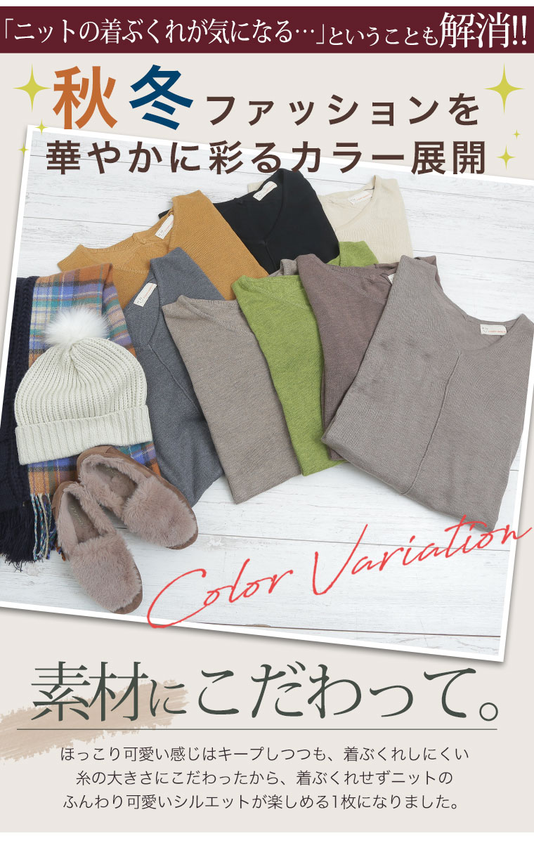 着ぶくれ回避の優秀小顔Vネックニット