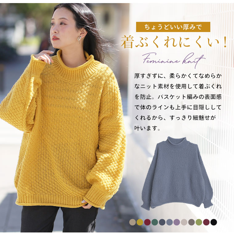 すっきり見えてゆったり着れるざっくりニットトップス