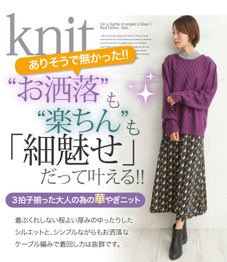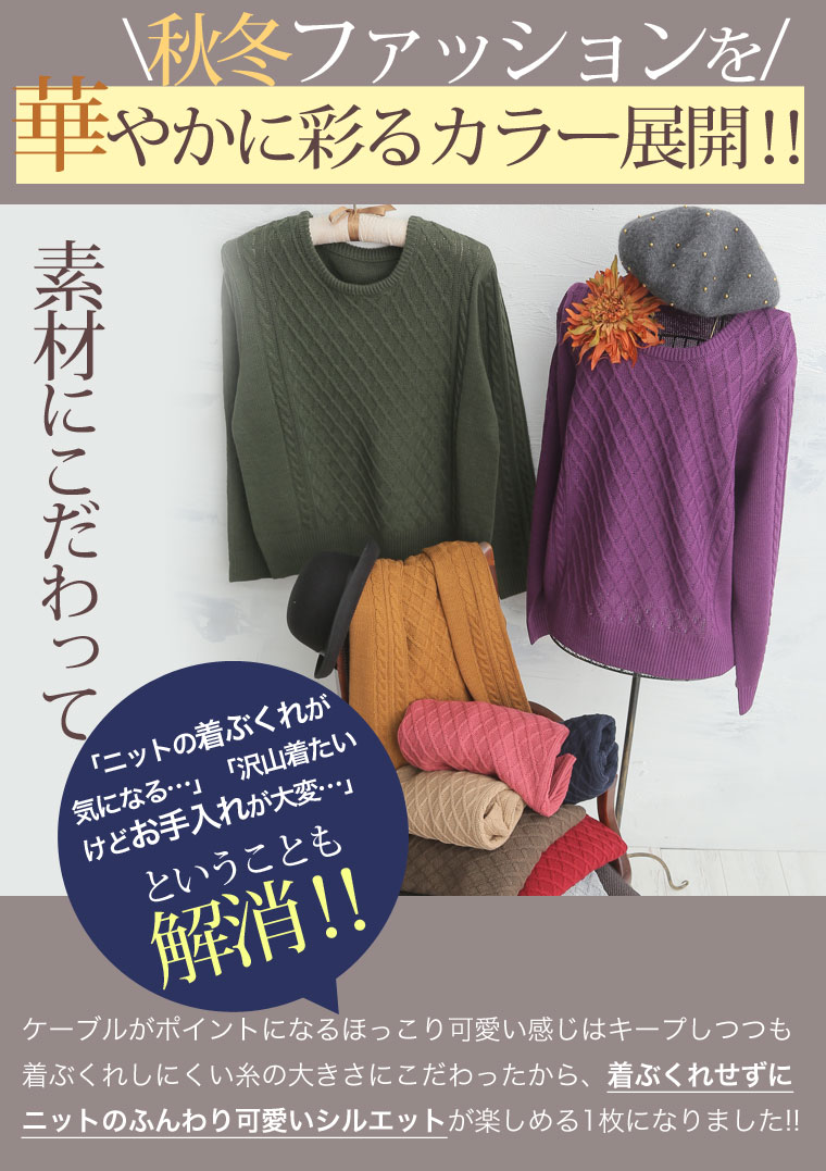 ケーブル編みでほっこり可愛い♪秋冬カラーでコーデをアップデート