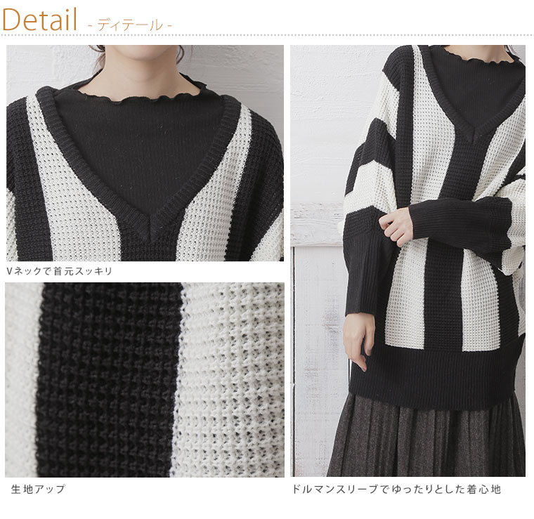 ストライプドルマンワッフルニットプルオーバー