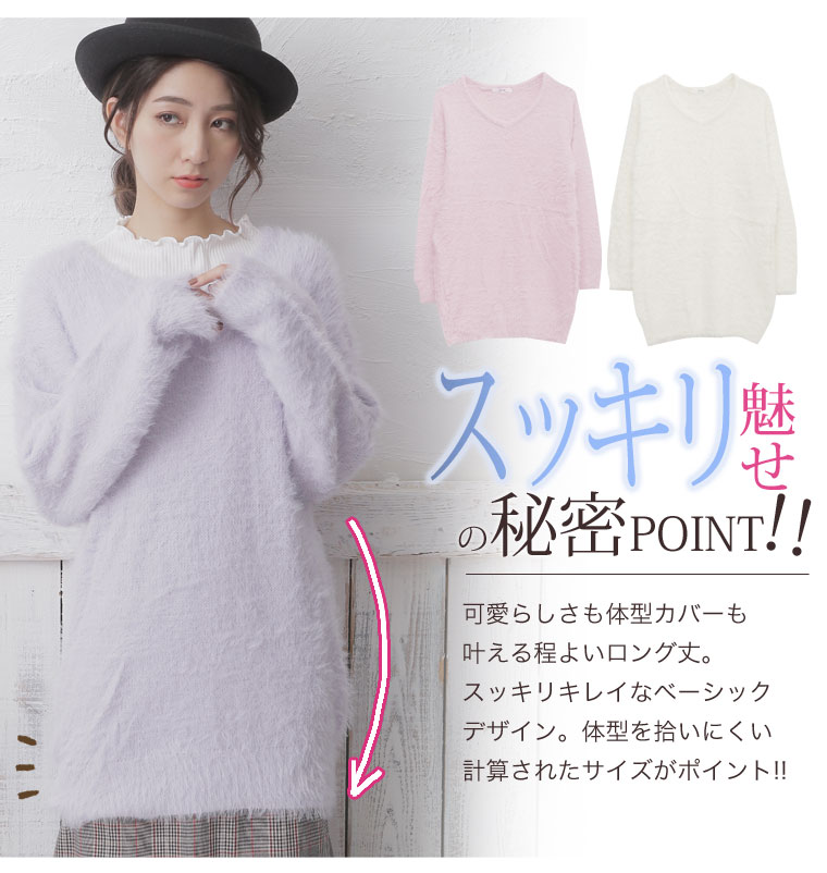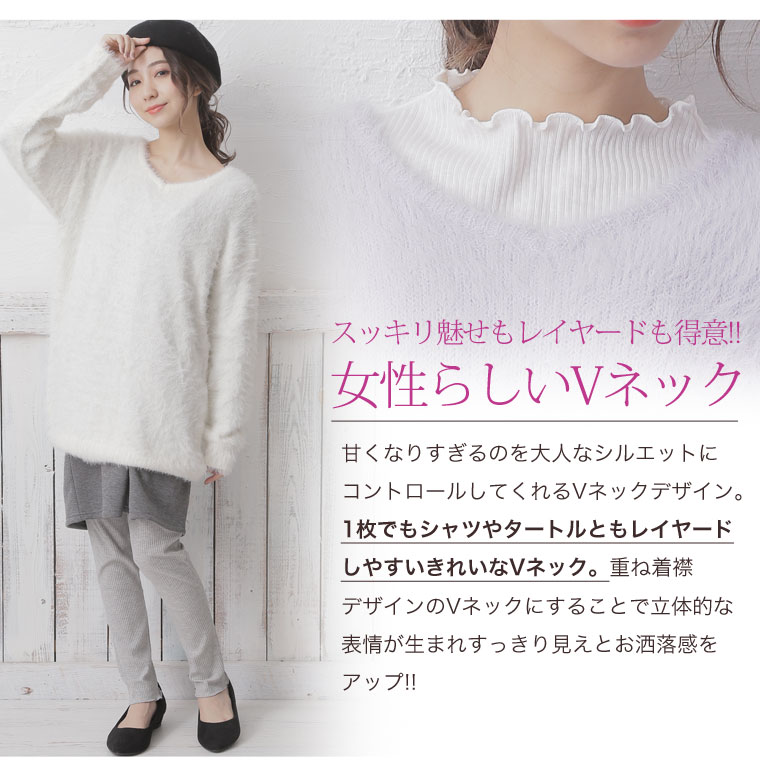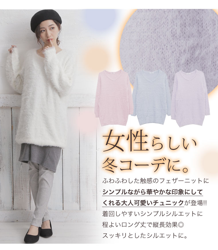 ふわもち生地でゆったり着こなす。Vネックフェザーヤーンチュニック