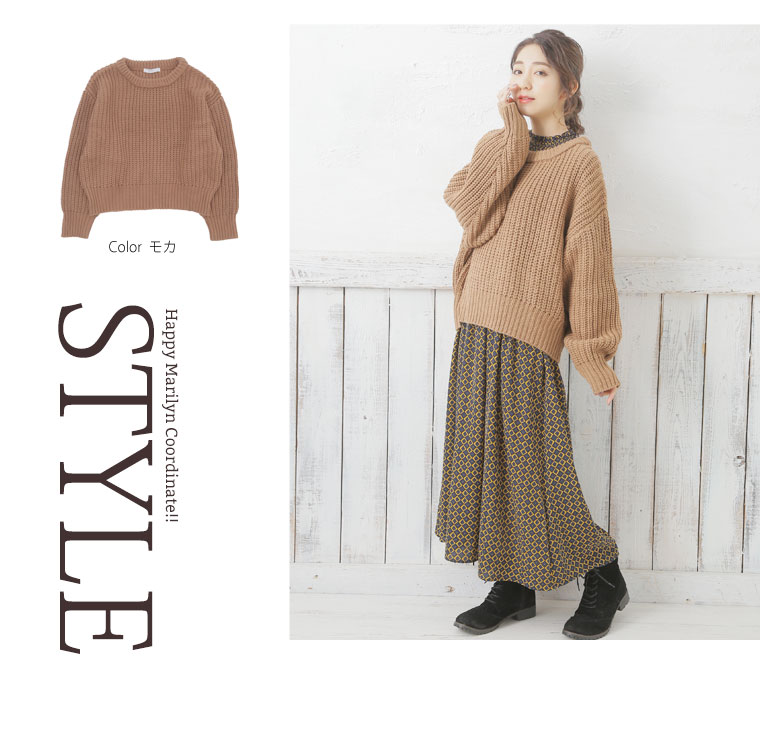 ざっくり編まれたデザインでこなれ感あるスタイルの完成!!ゆるっとシルエットで大人可愛くコーディネート