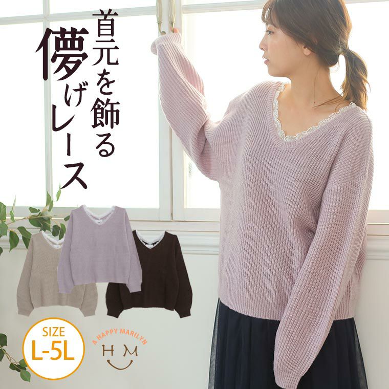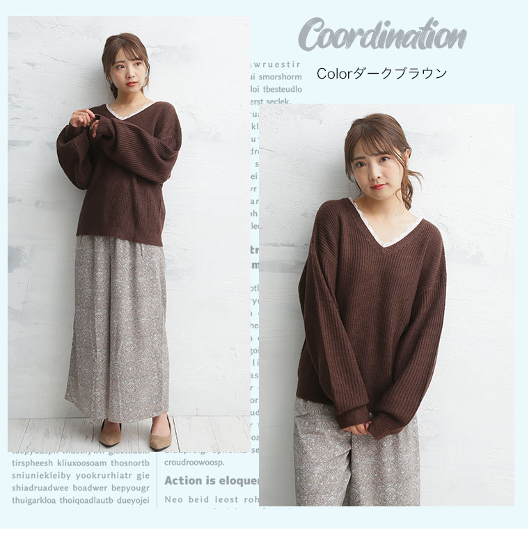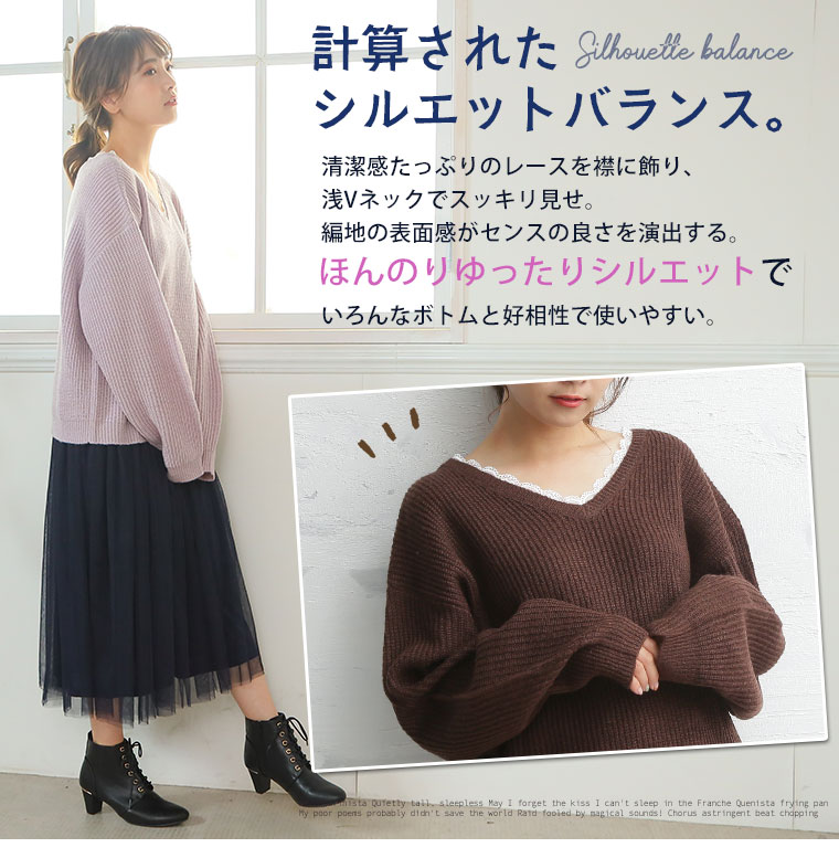 リブ見えする畦編みのニットだから 甘いだけじゃない、センスの良さを醸し出す
