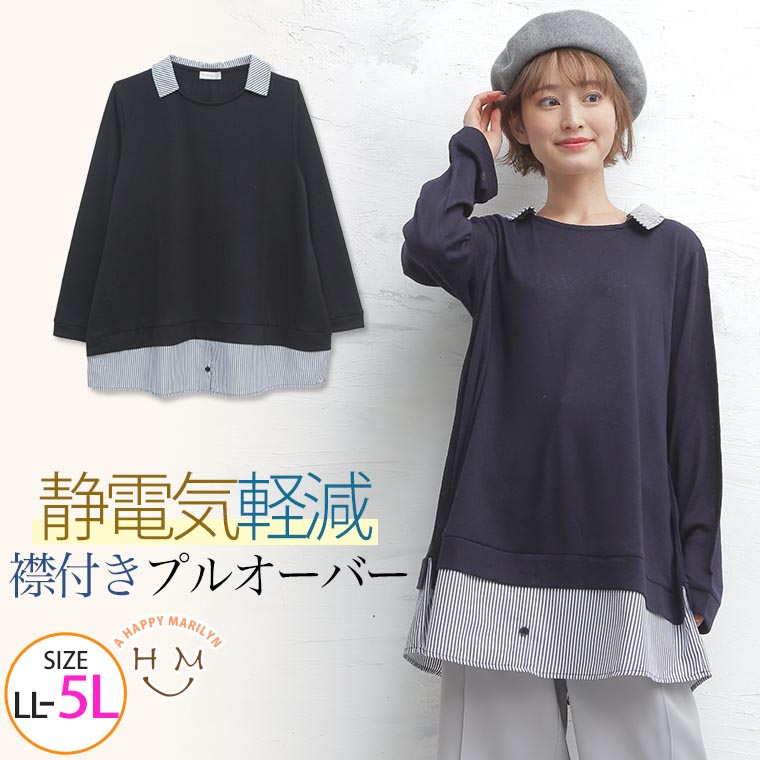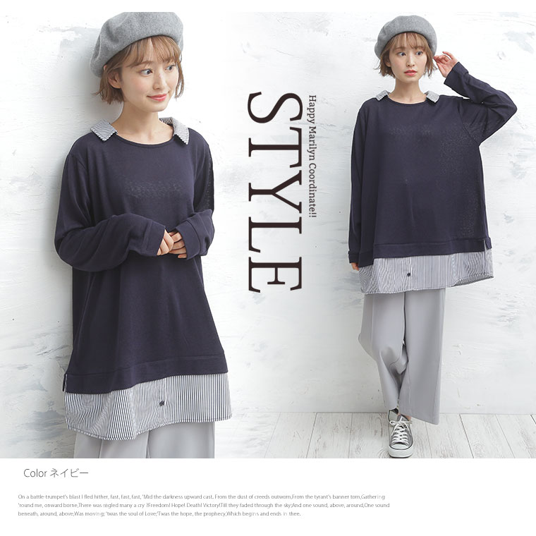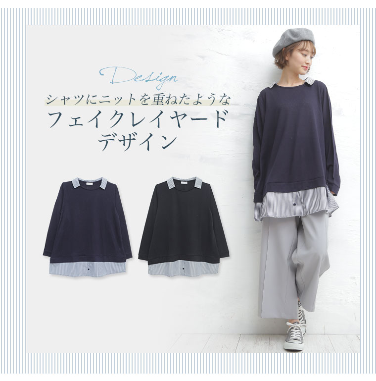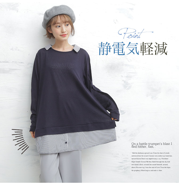 静電気軽減!レイヤード風を愉しむ異素材プルオーバー