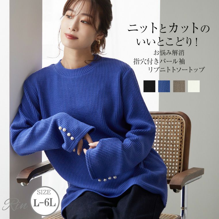6. 大きいサイズ Rin 指穴付き 袖パール リブニットソー トップス | 大きいサイズの通販ならハッピーマリリン