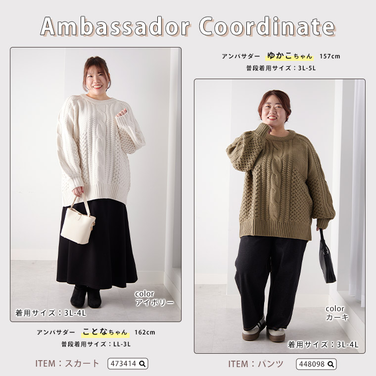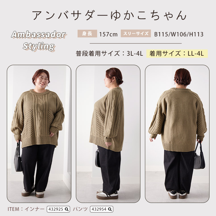 6. 大きいサイズ 【LUMFORLE produced by My:nia】5G ケーブルニット ゆるプルオーバー