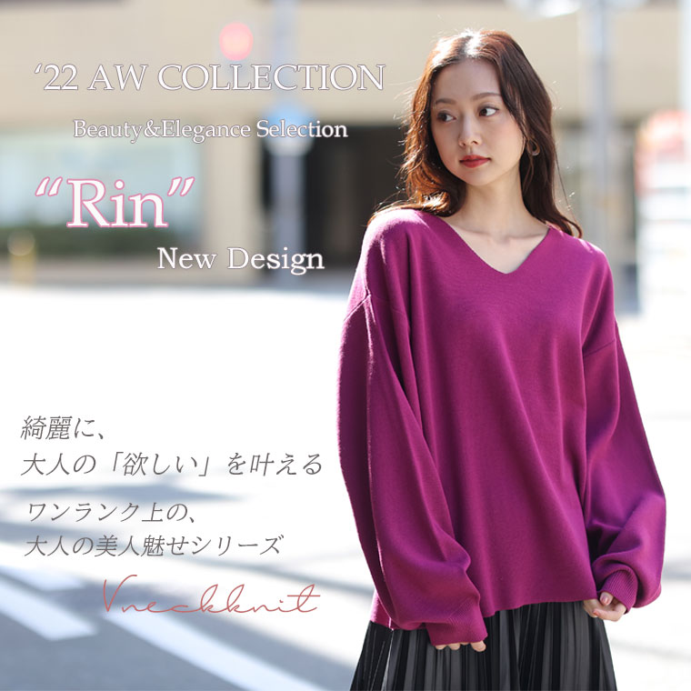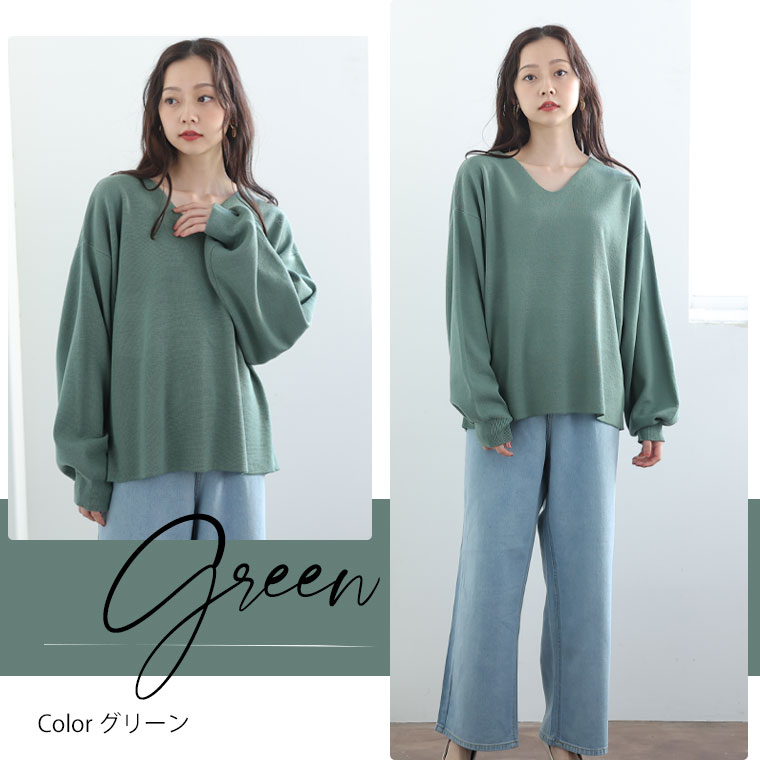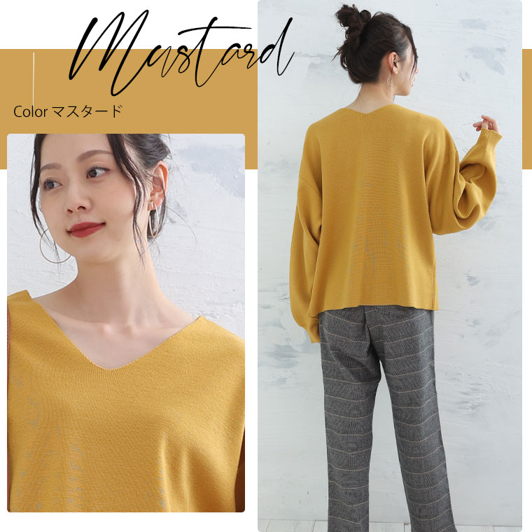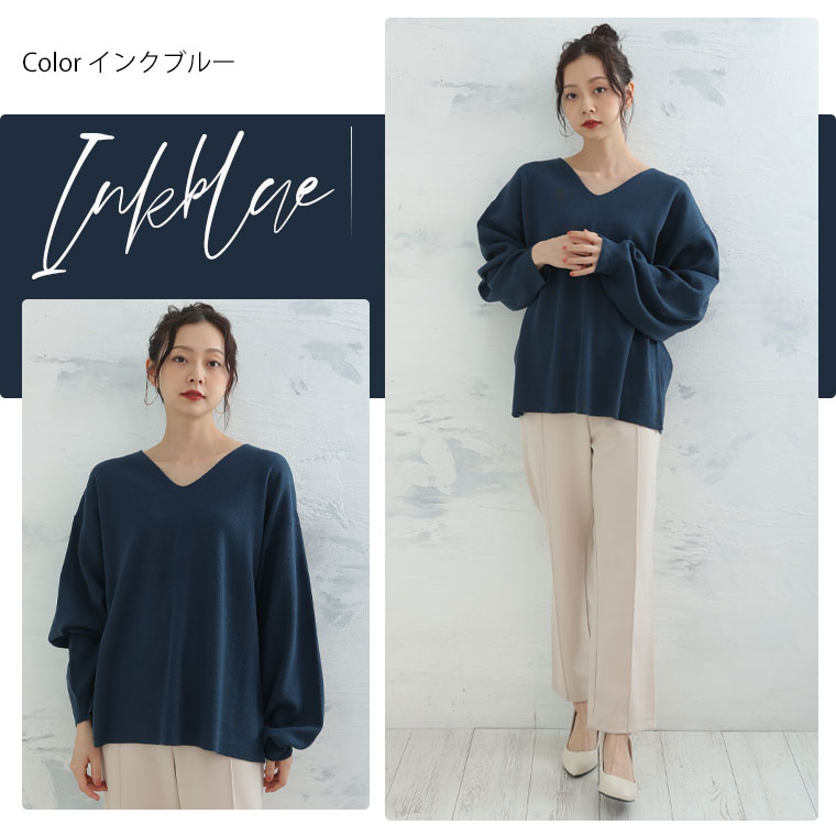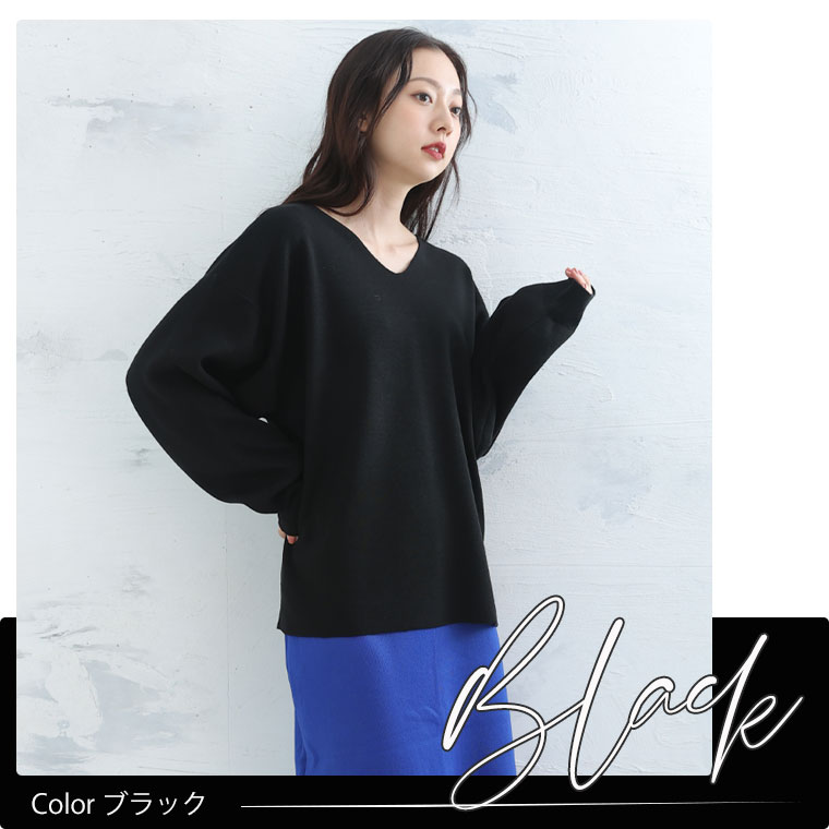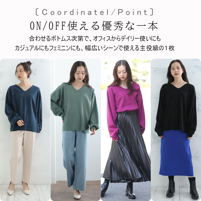6色から選べる 程よいゆるシルエットのVネックニット